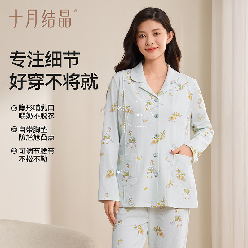 十月结晶兜兜鸭纯全棉吸汗月子服哺乳睡衣7A抗菌12月家居服女冬季