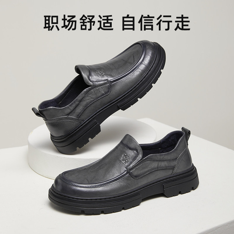 骆驼2024秋季新款软底舒适休闲正装经典商务套脚爸爸中年皮鞋男