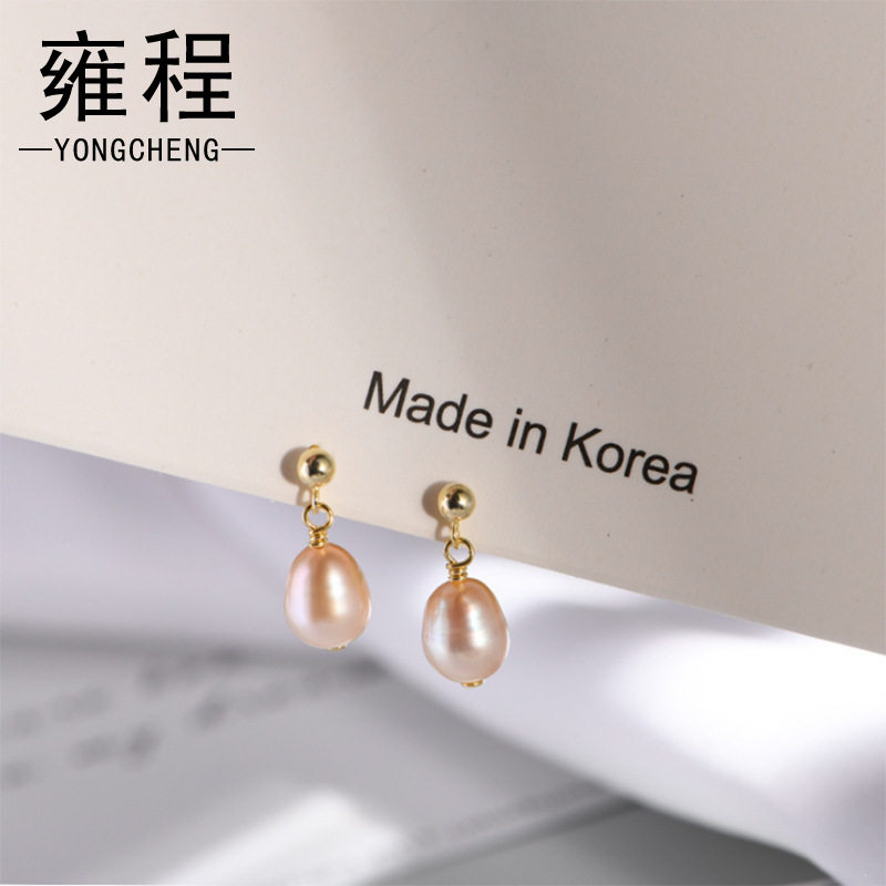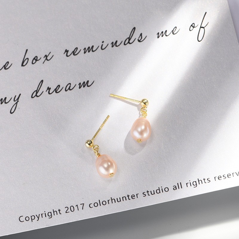 乾佳S925纯银耳饰女韩式天然巴洛克异形珍珠耳钉简约银饰工厂直供