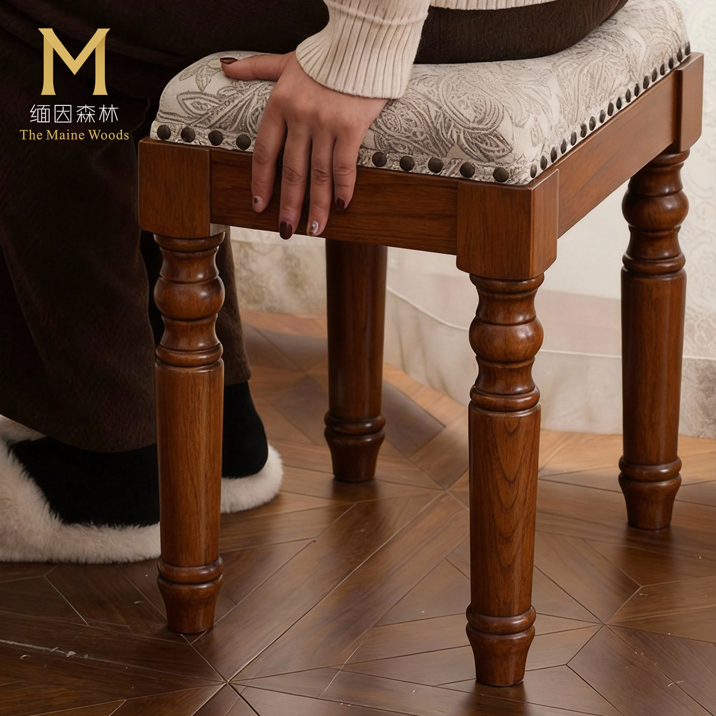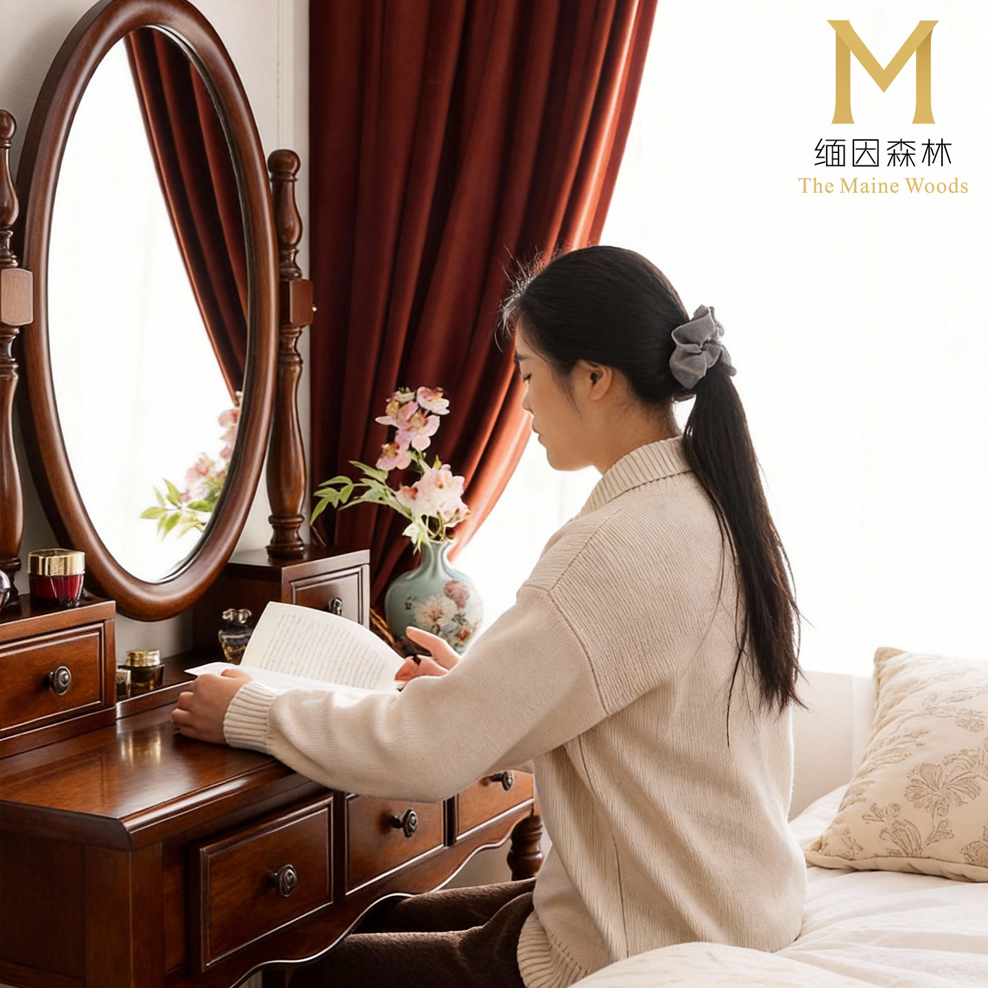 中古风纯实木梳妆台法式化妆桌卧室家具梳妆镜复古风格水性漆环保
