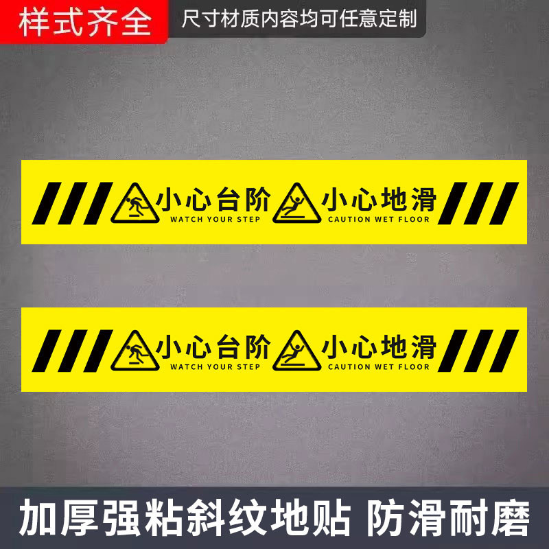 小心台阶地贴夜光小心地滑提示牌注意台阶提示贴纸防水小心台阶警示牌上下楼梯反光地标指示自发光安全标识牌