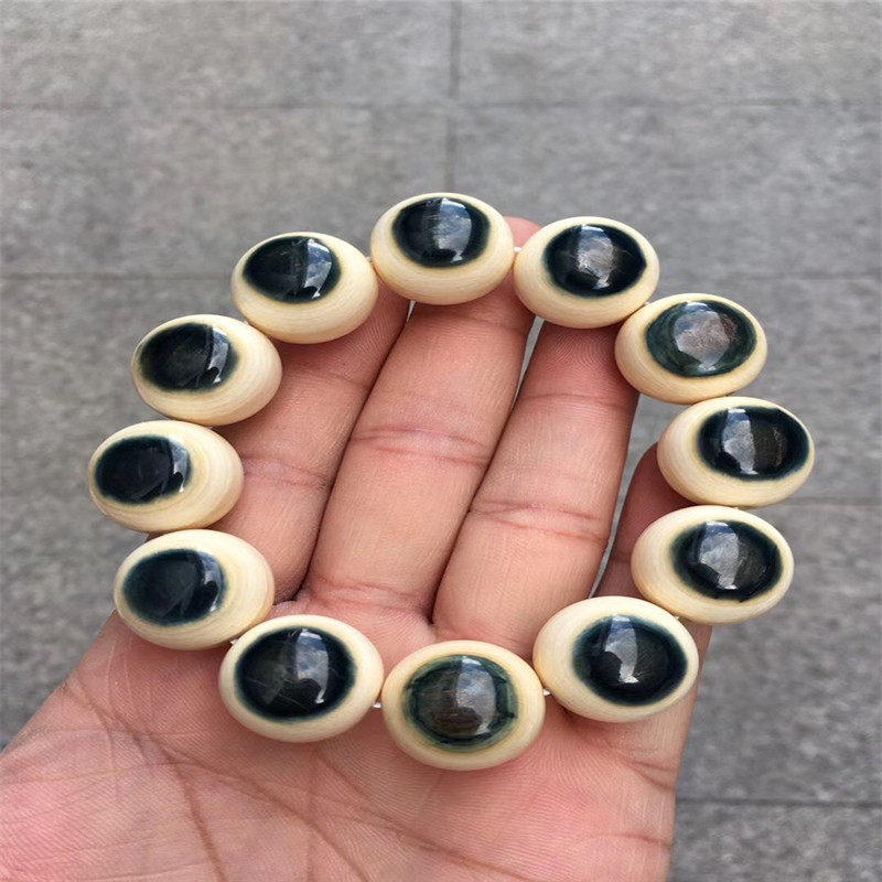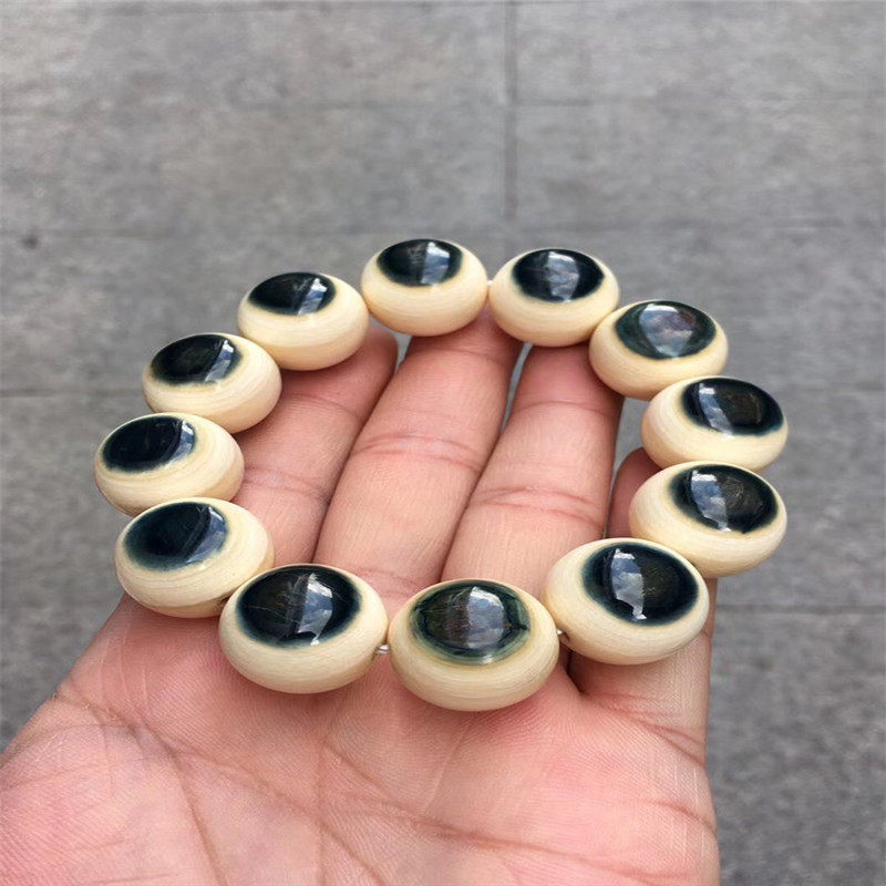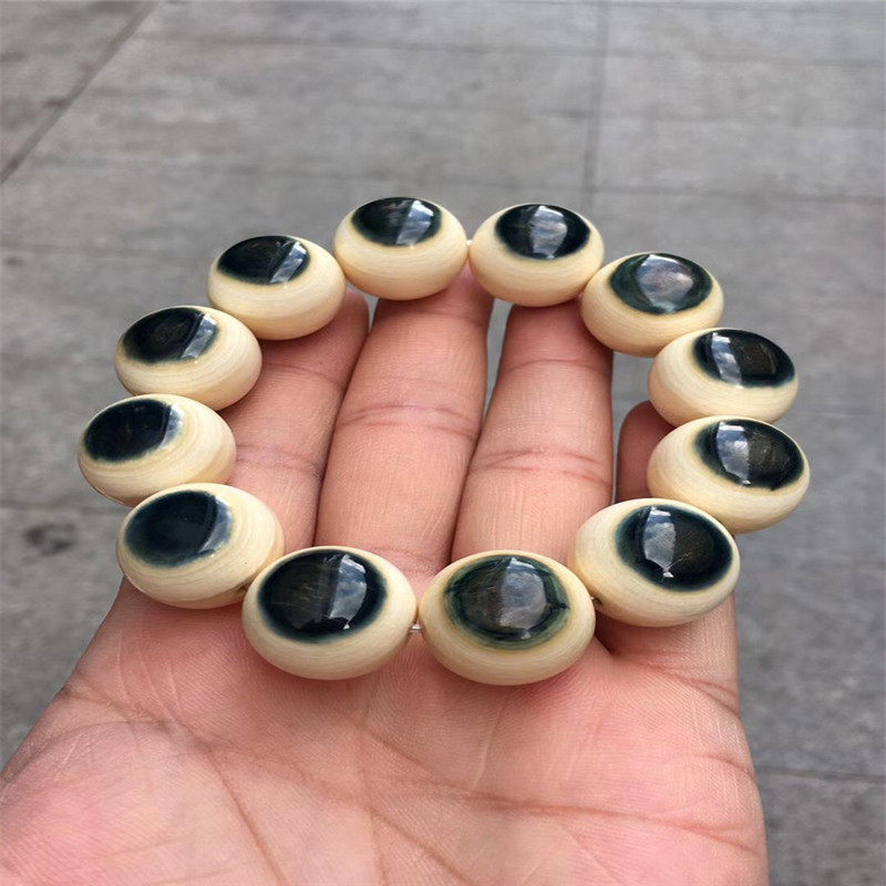 合成树脂象牙色蓝眼睛手串蓝皮大眼睛佛珠手链男款女念珠文玩礼品