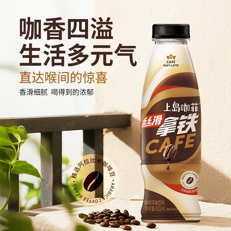 泰新鲜上岛咖菲拿铁咖啡瓶装咖啡饮料咖啡豆420ml*6瓶/箱即饮丝滑