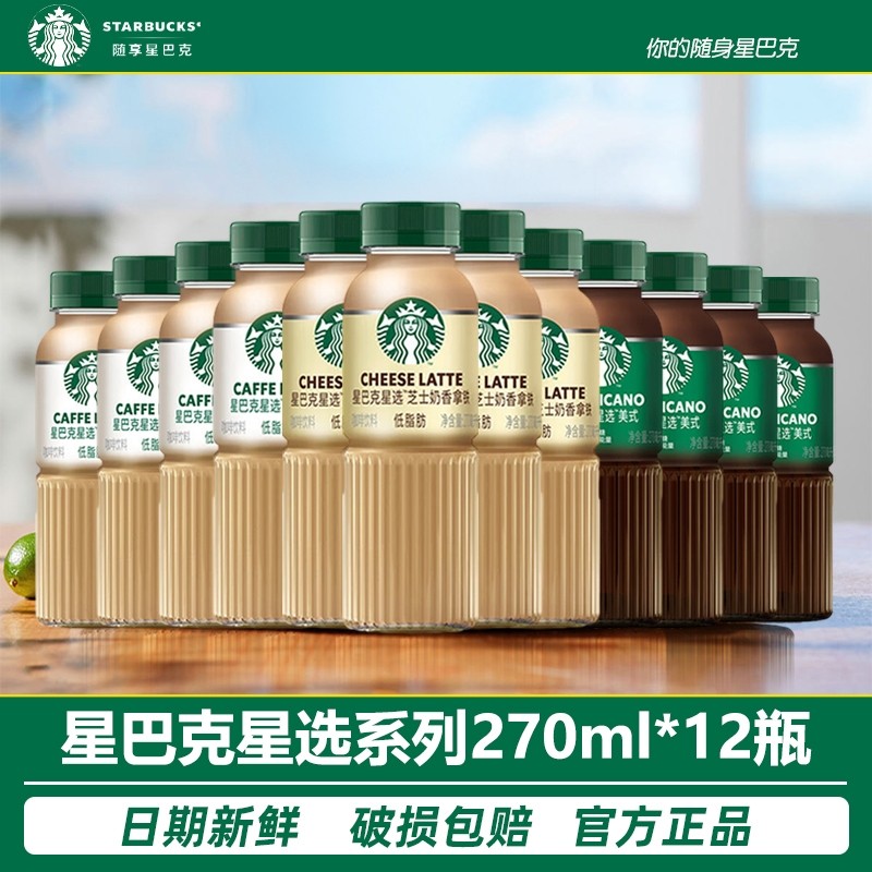 星巴克拿铁芝士奶香美式270ml*12瓶低脂即饮咖啡饮料整箱