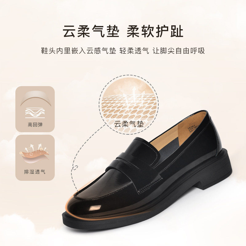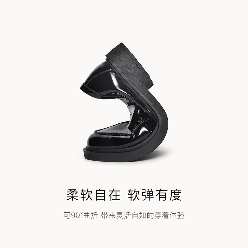董洁同款真美诗自由之歌柔软水洗牛皮小皮鞋粗跟乐福鞋女男女同款