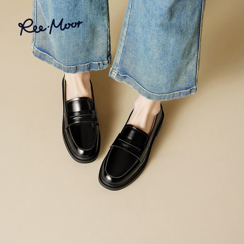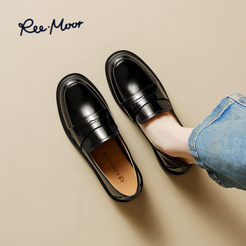 REEMOOR睿慕秋冬新款商场同款软底通勤真皮乐福鞋厚底小皮鞋女