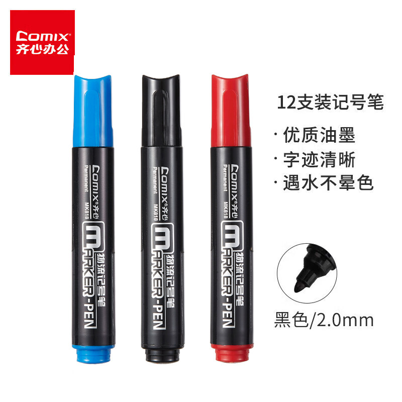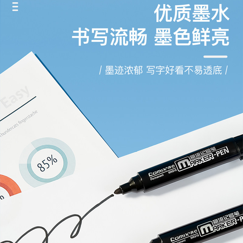 齐心MK818记号笔油性单头笔防水物流快递笔速干马克笔光盘勾线笔