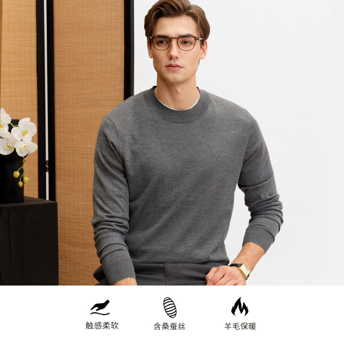 【羊毛蚕丝混纺】庄吉男士羊毛衫2025秋冬新款T恤衫保暖套头毛衣