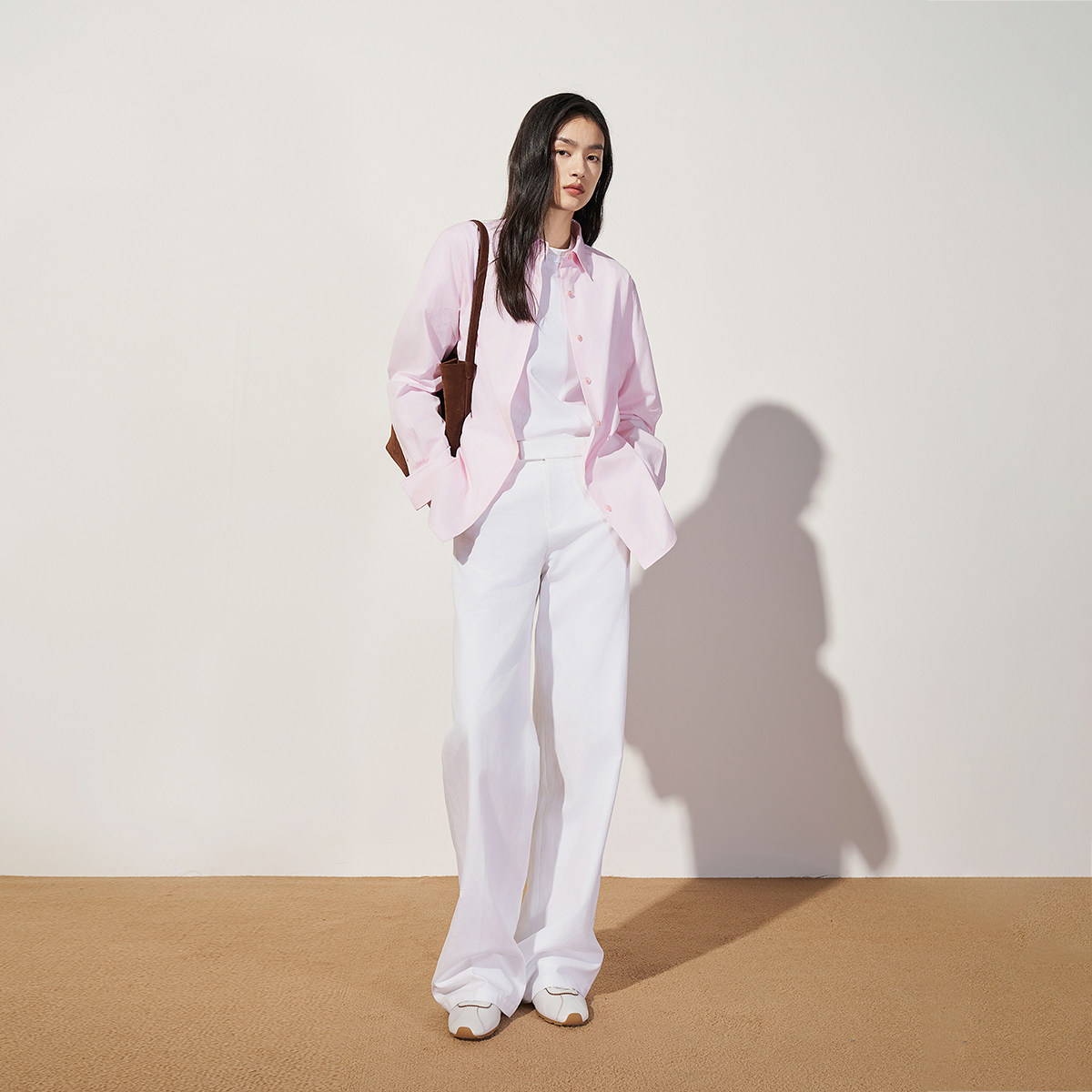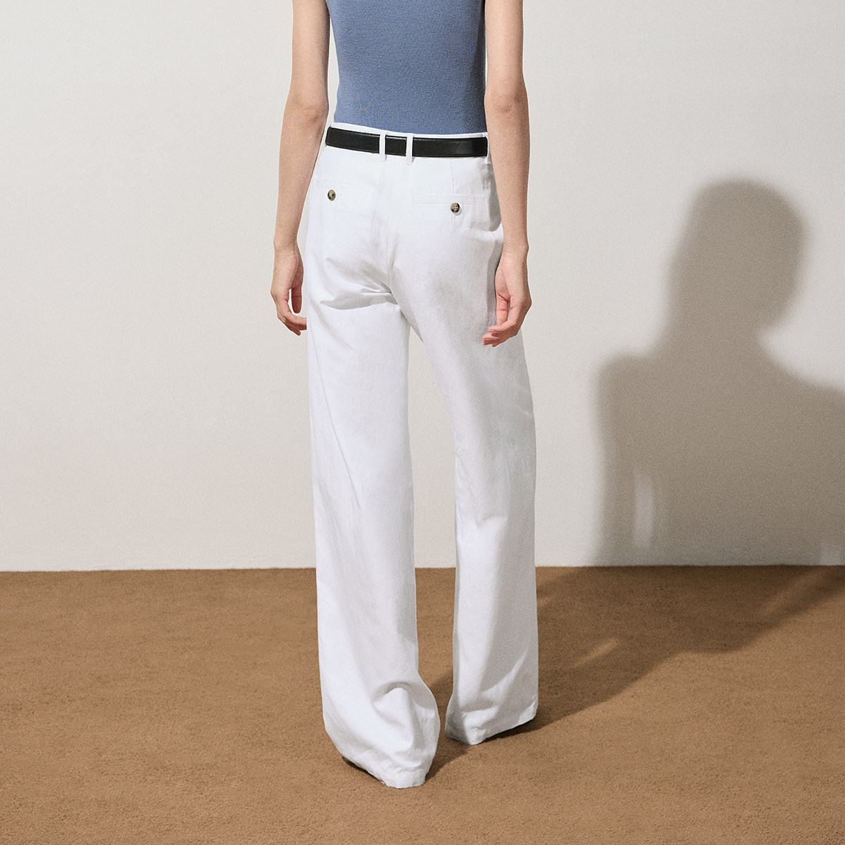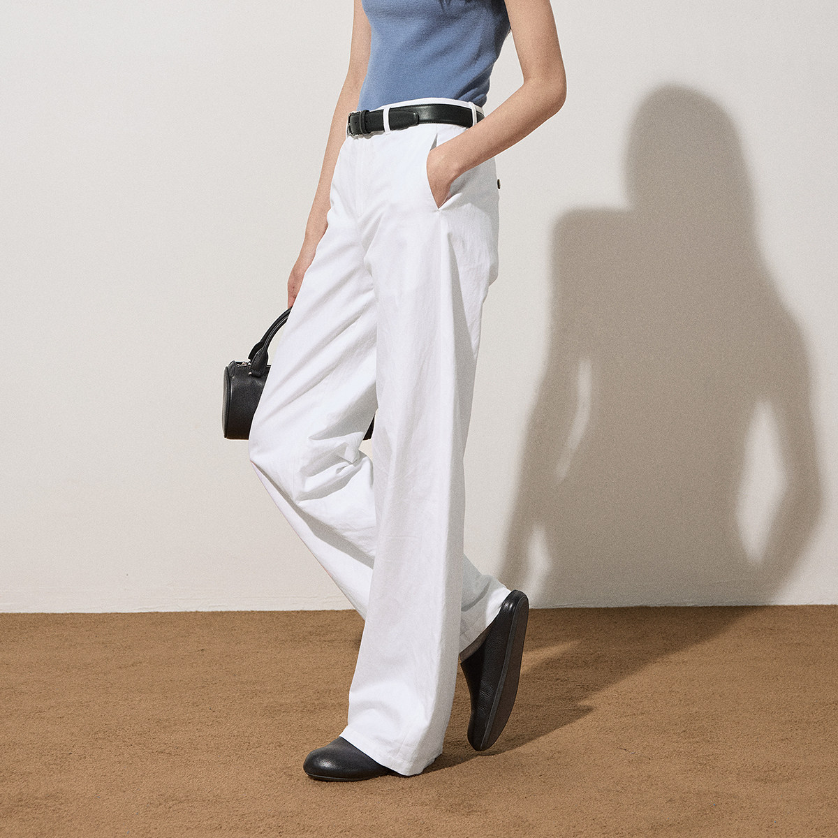 OCHIRLY欧时力棉苎麻直筒裤子女休闲宽松显瘦松弛感春装