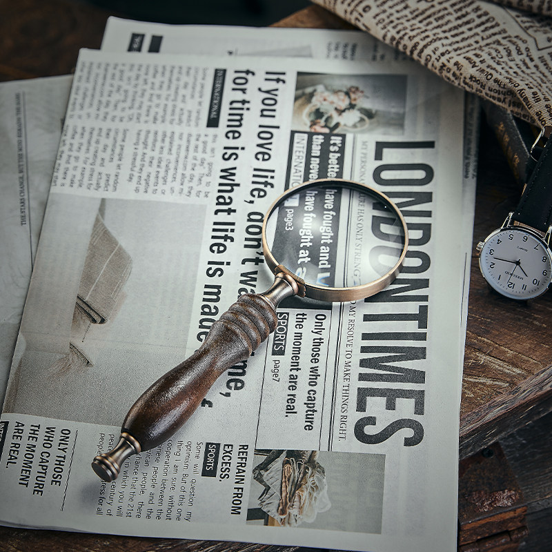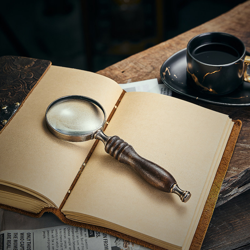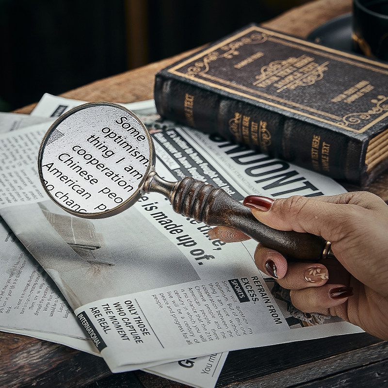 复古做旧手持实木手柄放大镜样板间软装摆件装饰饰品摄影拍照道具