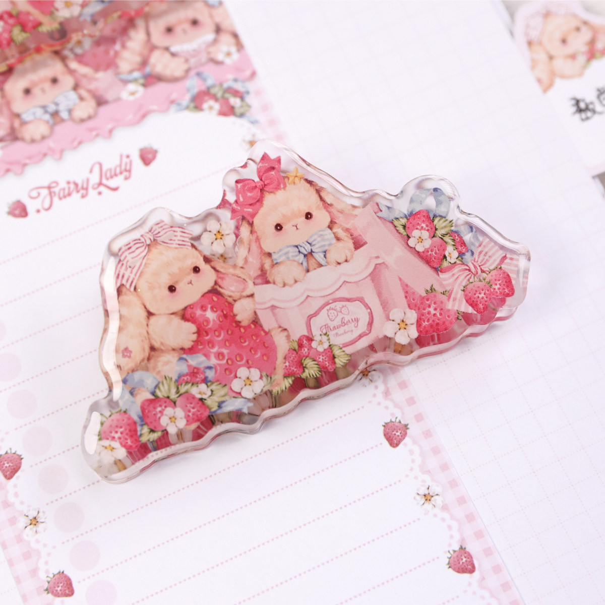 少女志原创兔兔草莓亚克力夹子手帐票据夹照片装饰可爱滴胶留言夹