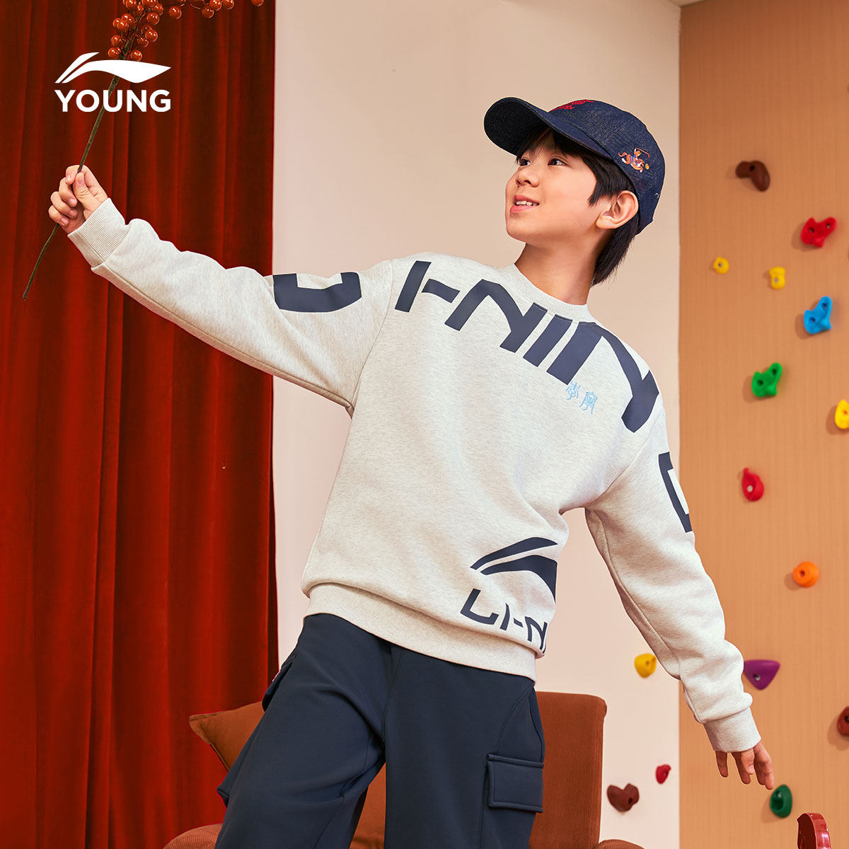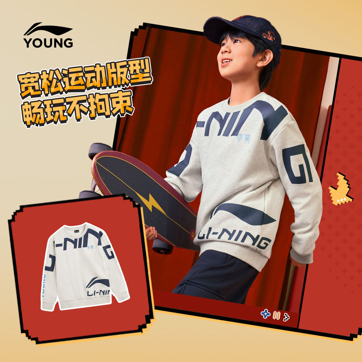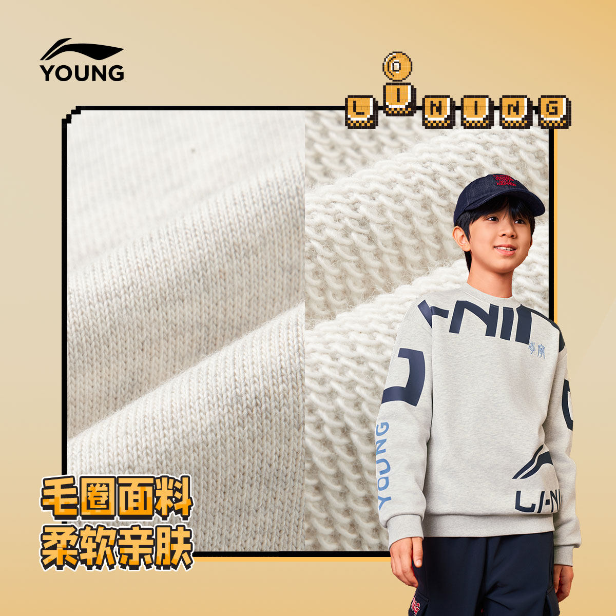 李宁童装卫衣男女小大童运动生活系列圆领宽松秋冬休闲毛圈童装