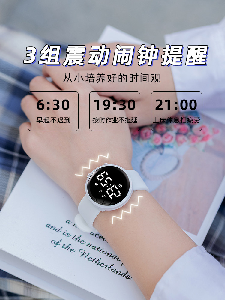 电子手表男初高中学生女无声震动闹钟静音儿童运动只看时间考试环