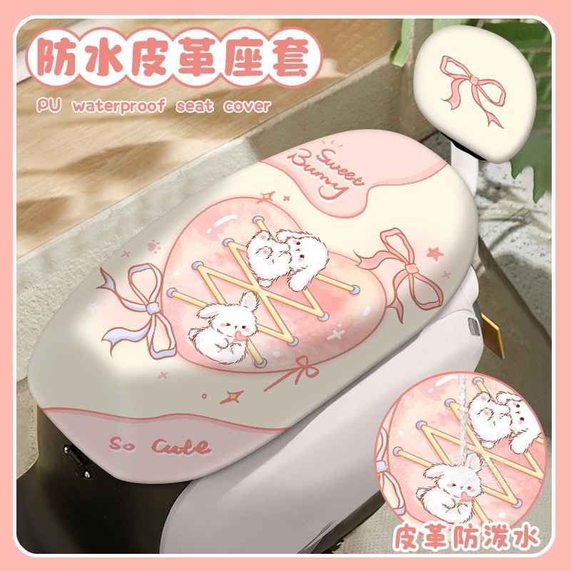 蝴蝶结兔兔电动车座垫套防水防晒新款可爱摩托电瓶车通用坐椅护罩