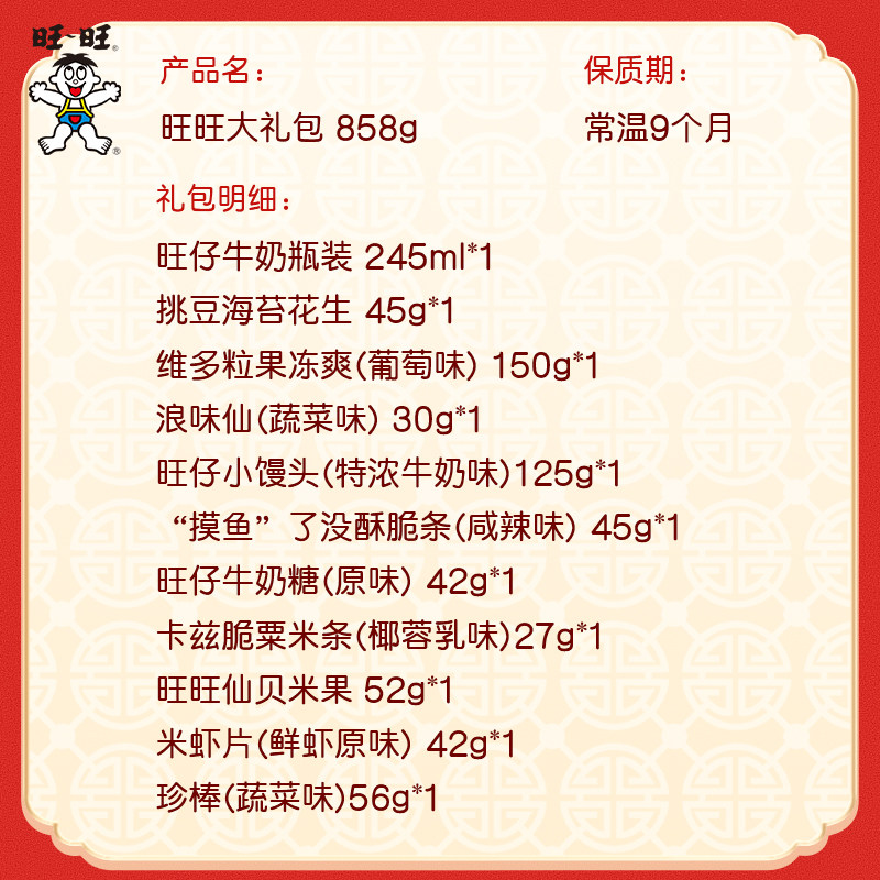 旺旺大礼包858g休闲零食大礼包过节送礼走亲戚送朋友送闺蜜
