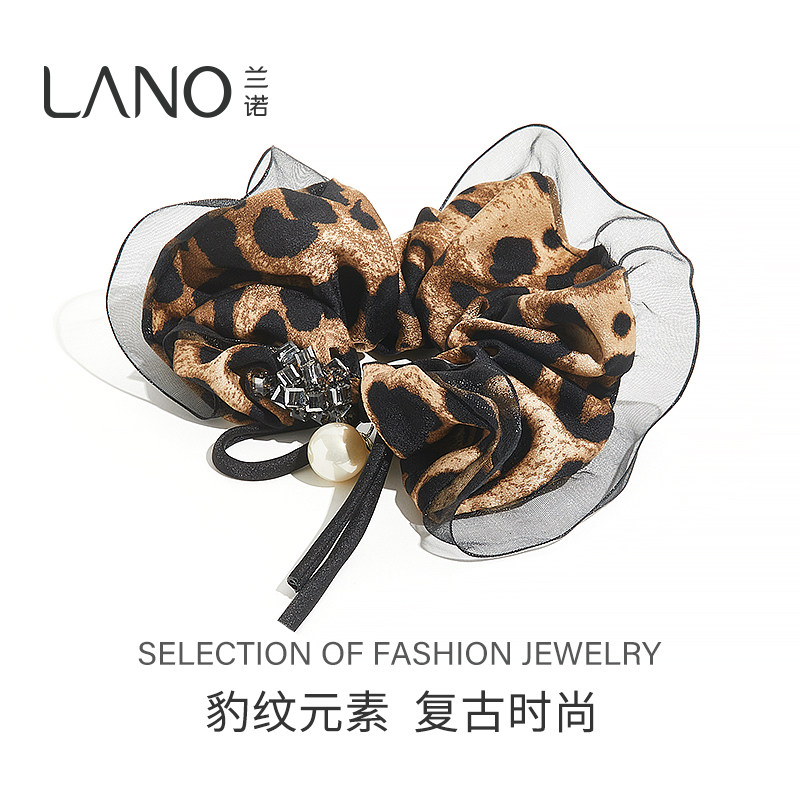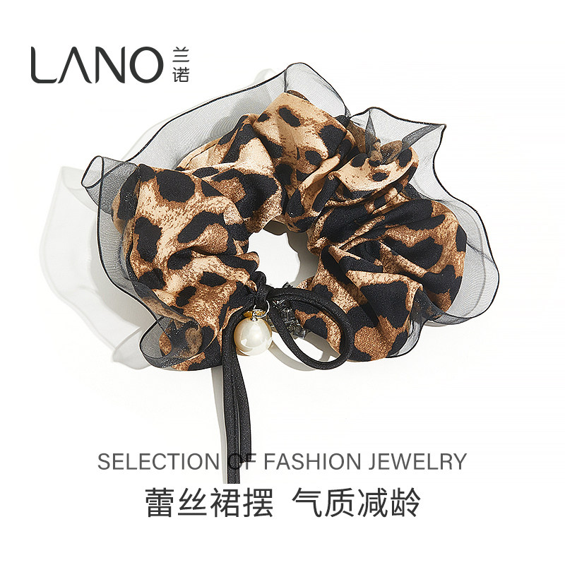 兰诺豹纹网纱大肠发圈女头绳高级感时尚洋气2025新款扎头发丸子头