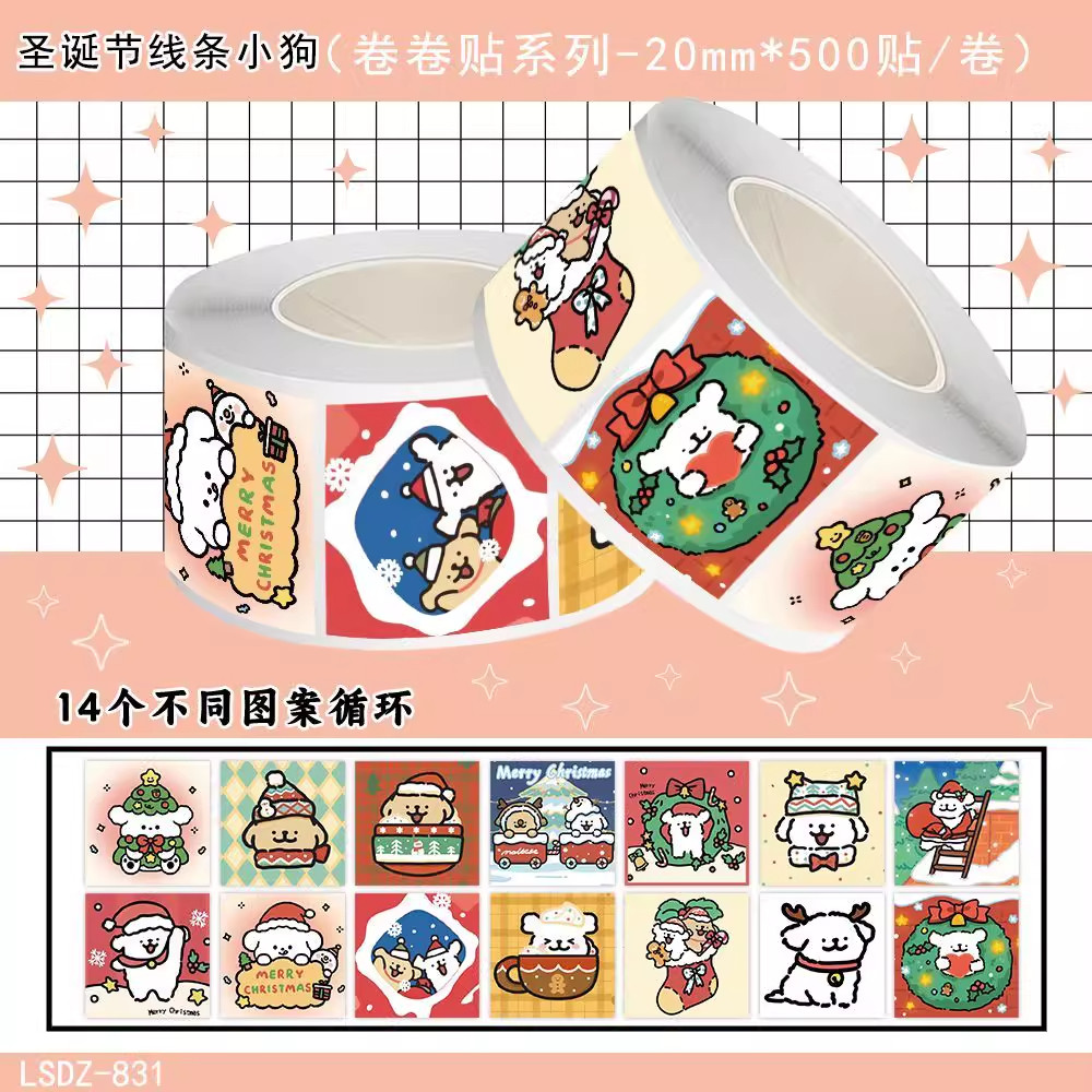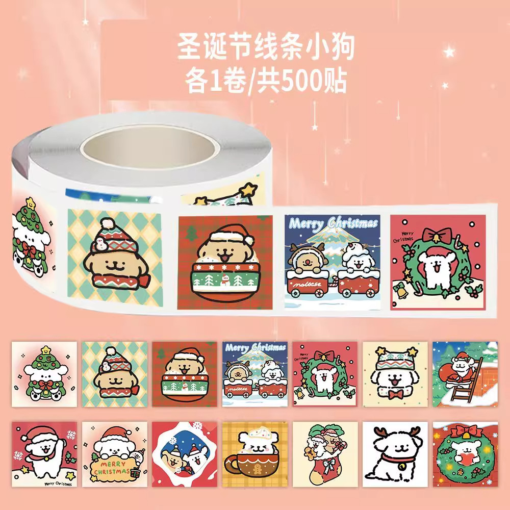 3000贴圣诞节线条小狗卷卷贴可爱圣诞氛围表情包装饰防水封口贴