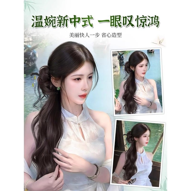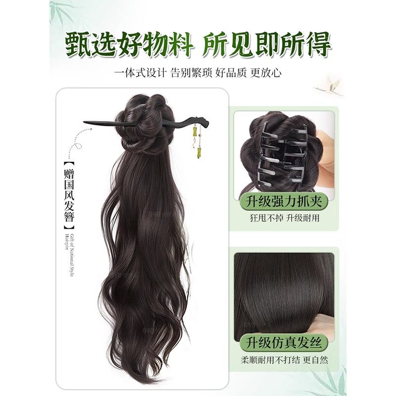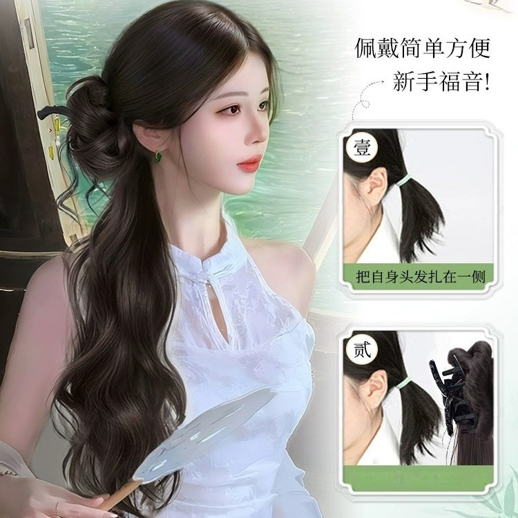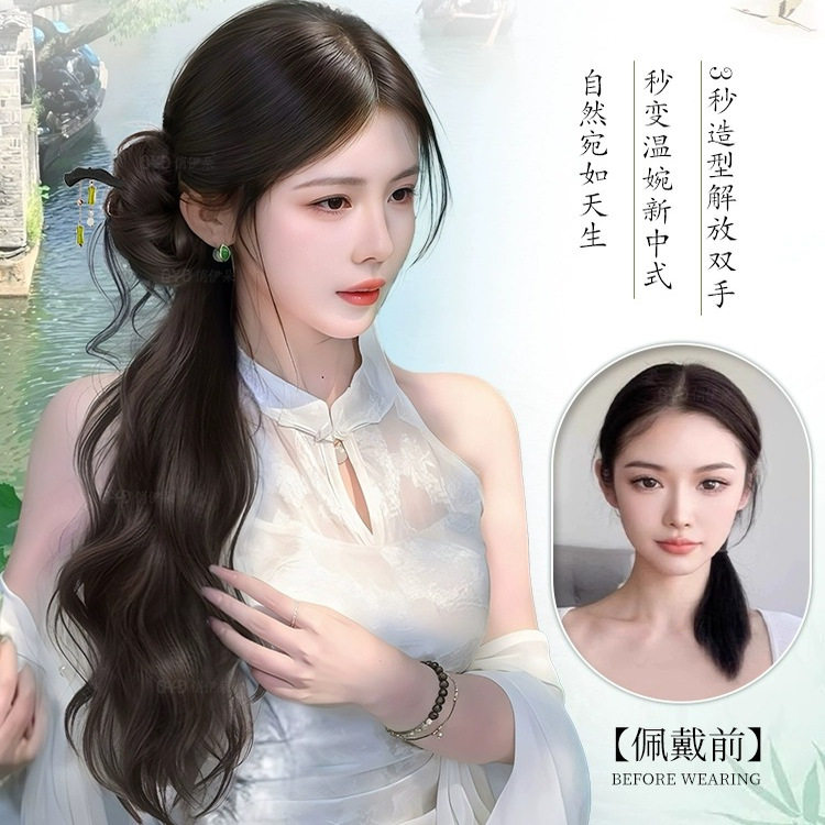 假发辫马尾女新中式假发抓夹温婉盘发旗袍轻国风仿真辫子假发马尾