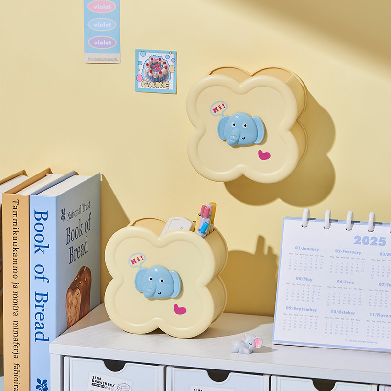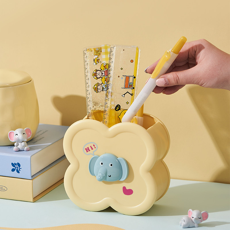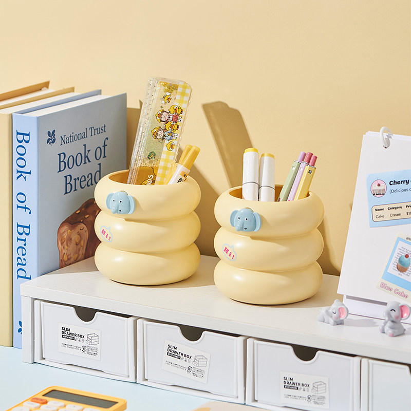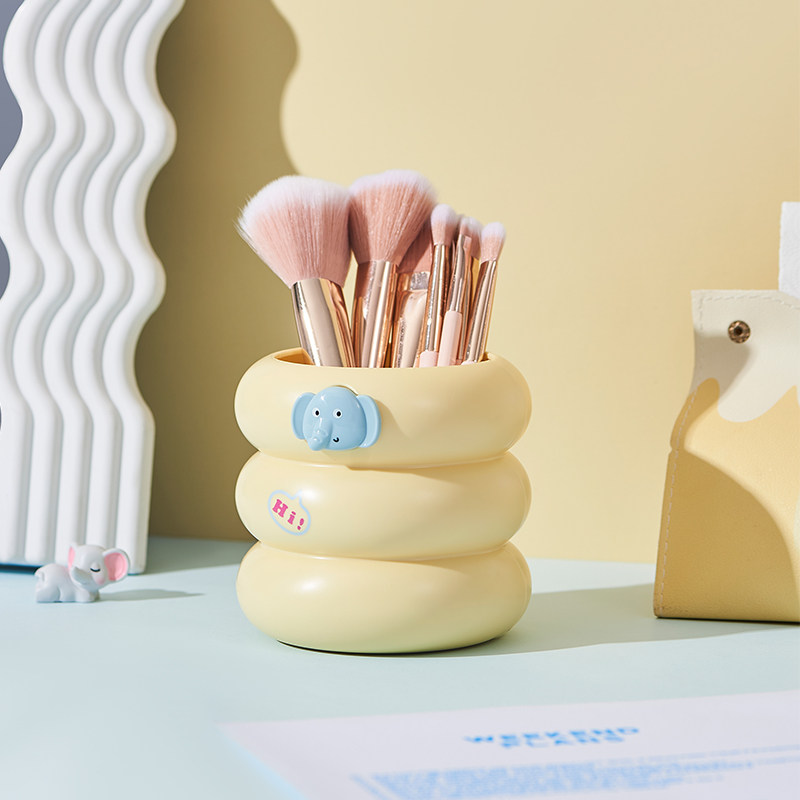小飞象笔筒创意收纳盒桌面化妆刷收纳桶大容量书桌笔桶可爱文具