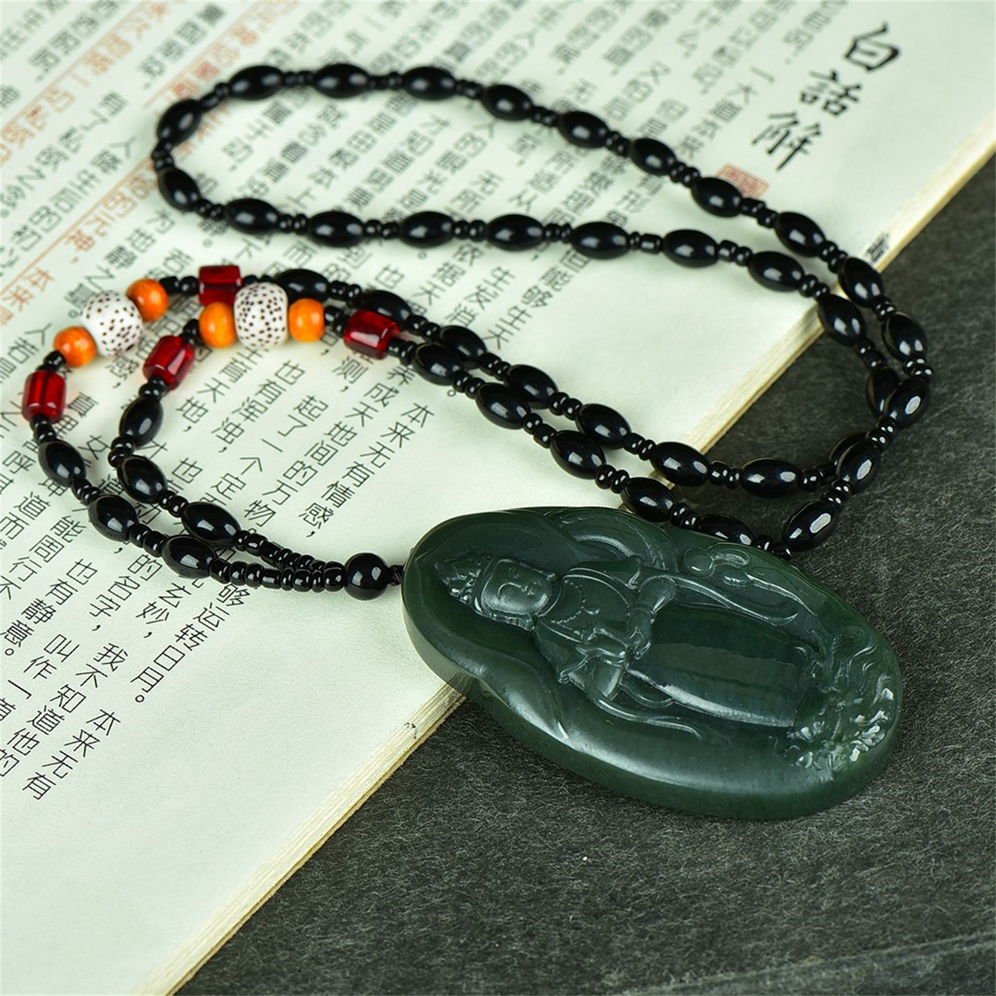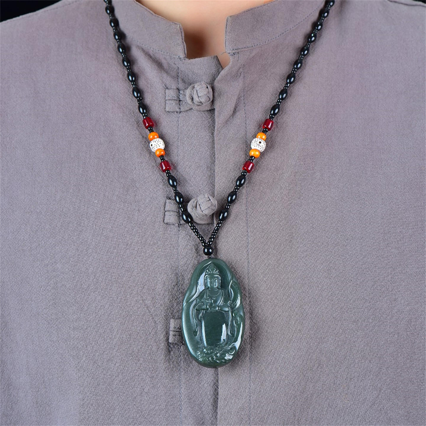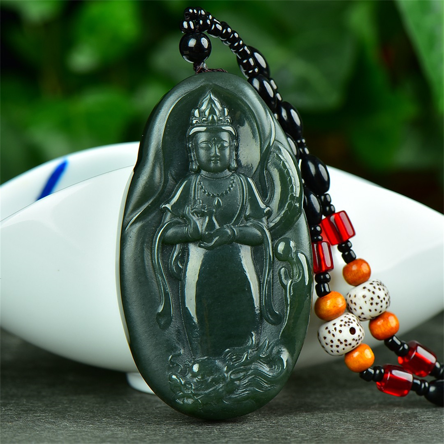 送证书天然新疆和田玉青玉挂件净瓶观音菩萨玉石吊坠男款玉佩8726
