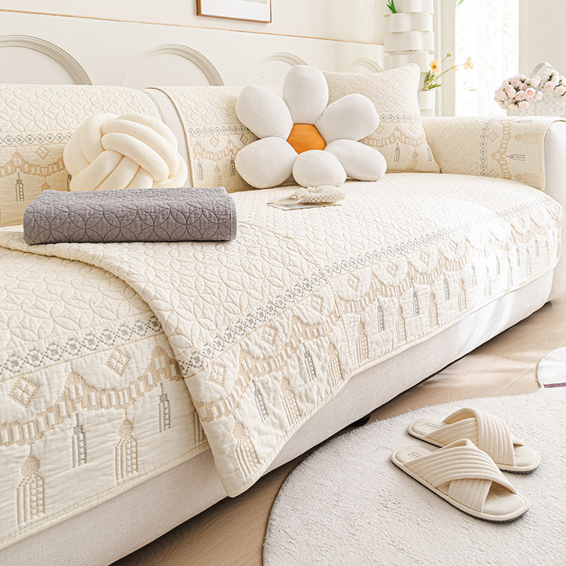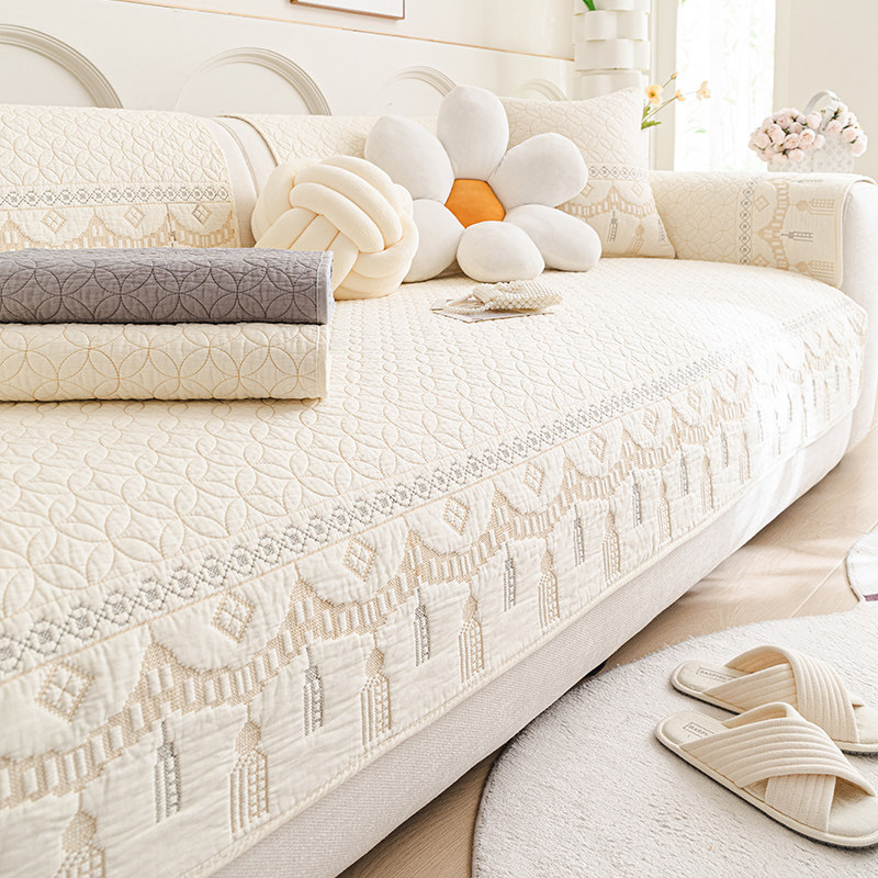 法式奶油风全棉沙发垫布艺四季通用简约新款防滑沙发垫子盖布巾卓
