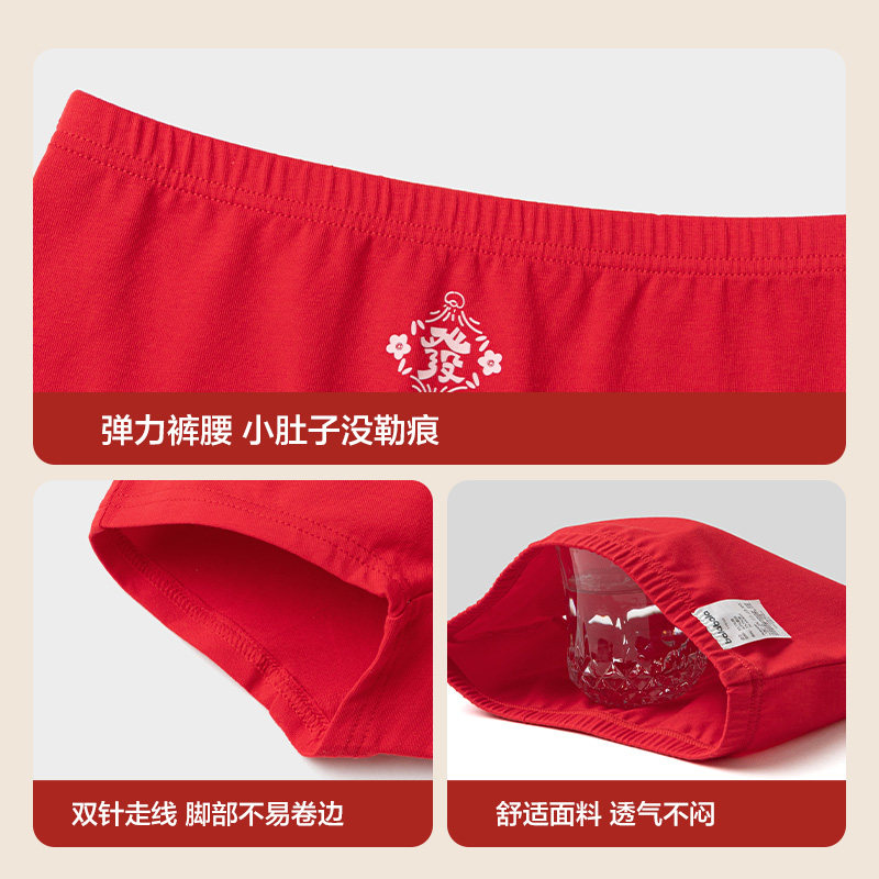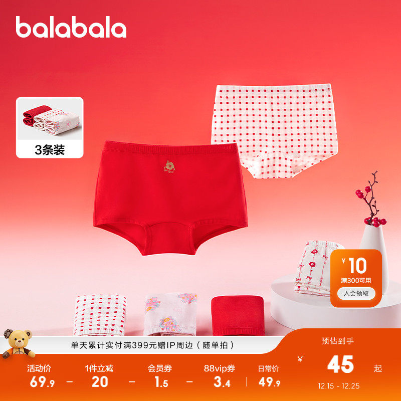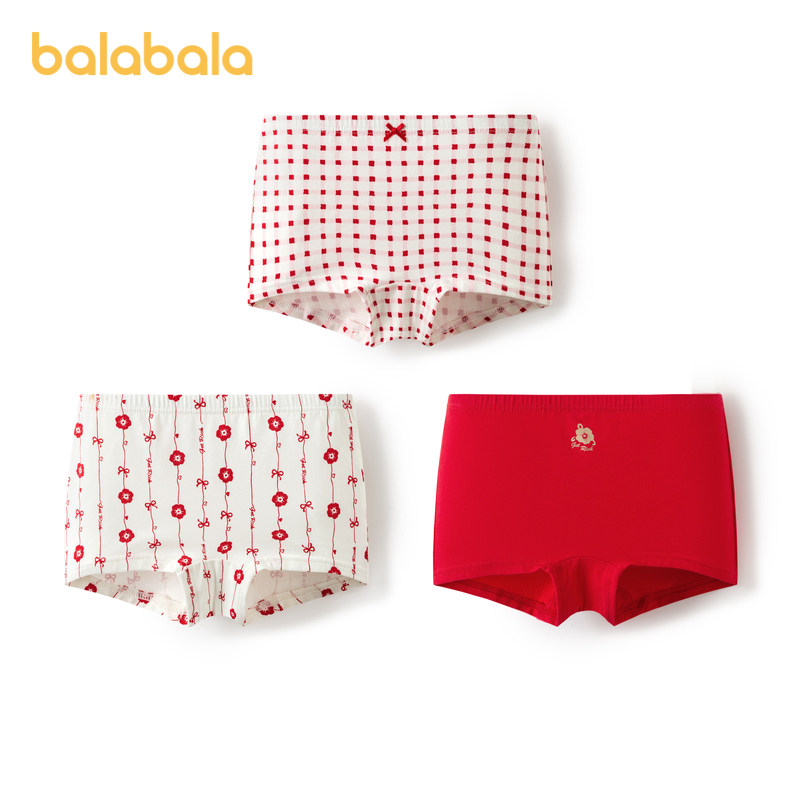 巴拉巴拉女童内裤平角棉本命年红色2025新款儿童短裤四角三条装潮