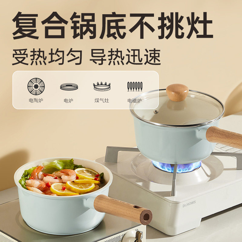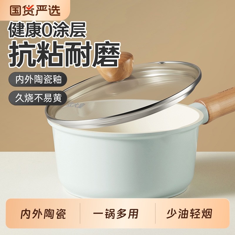 炊大皇陶瓷无涂层小奶锅宝宝婴儿辅食锅蒸一体汤锅不粘煮粥电磁炉