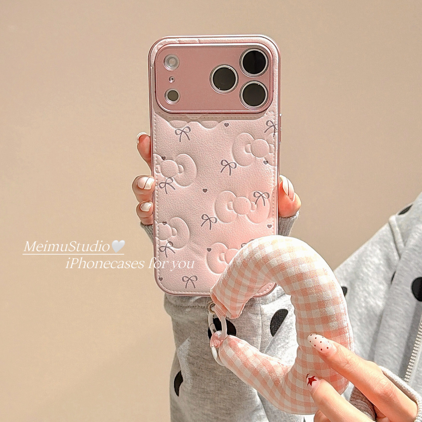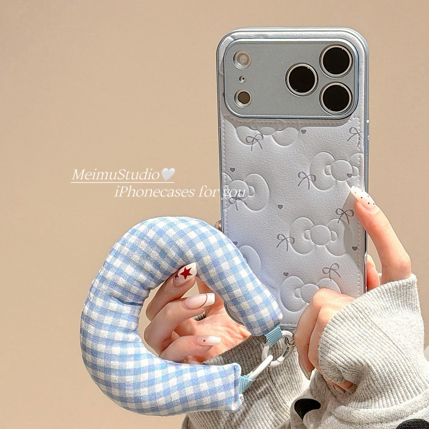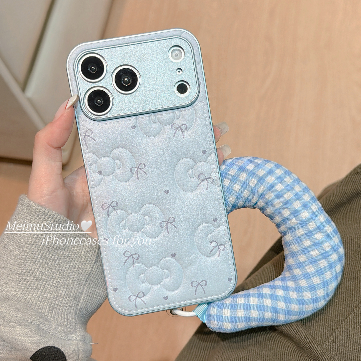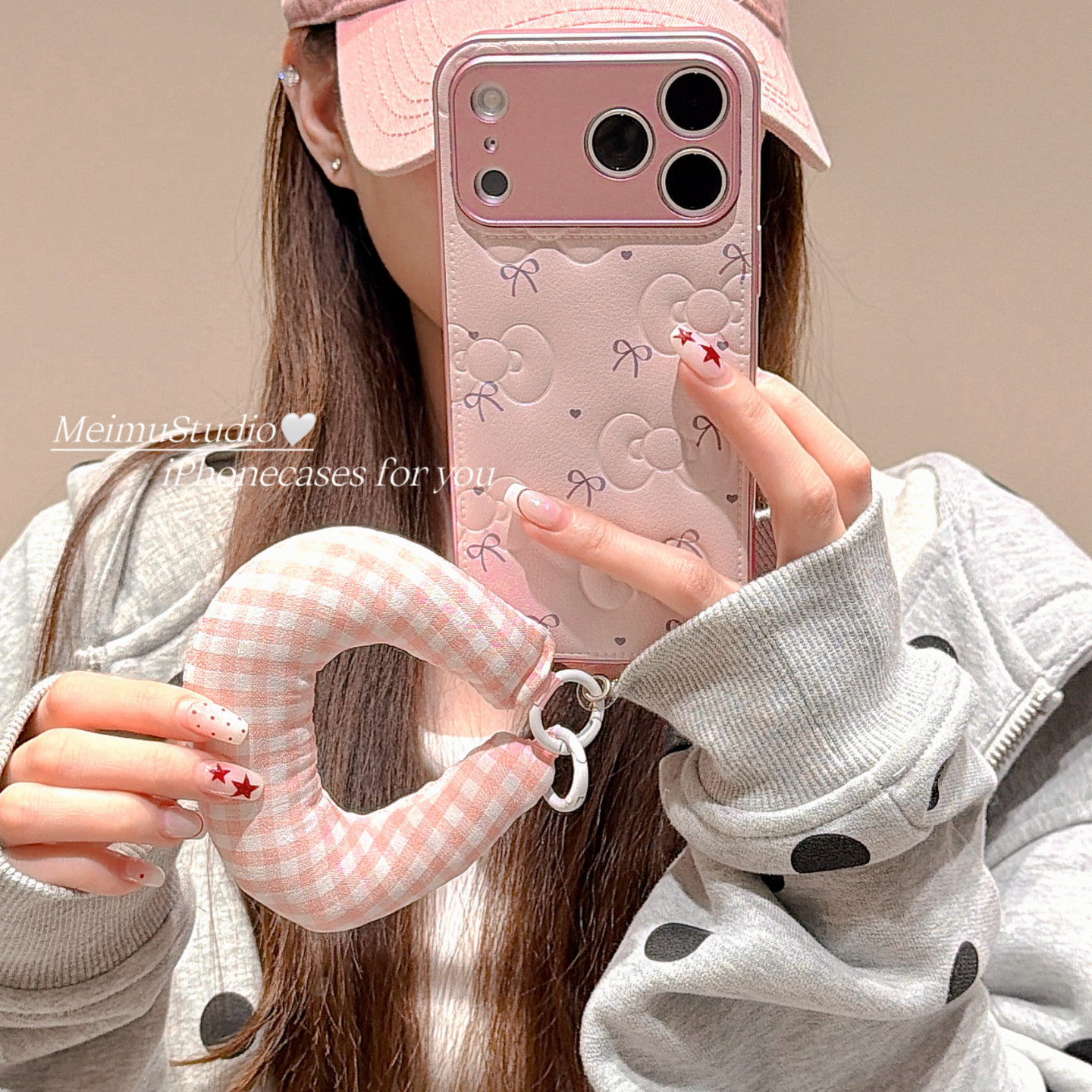 美牧韩系ins皮质蝴蝶结爱心适用苹果17promax手机壳iphone16pro新款15腕带挂绳17少女14秋冬13简约16pm全包硬