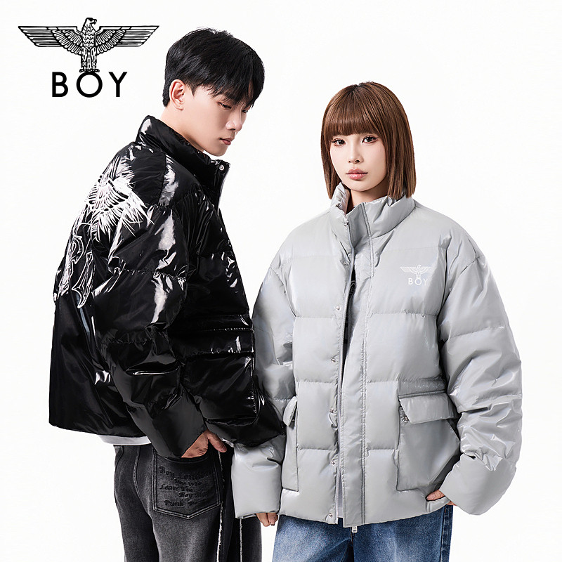 BOYLONDON短款羽绒服情侣款冬季潮牌夜光印花加厚外套90绒N28900