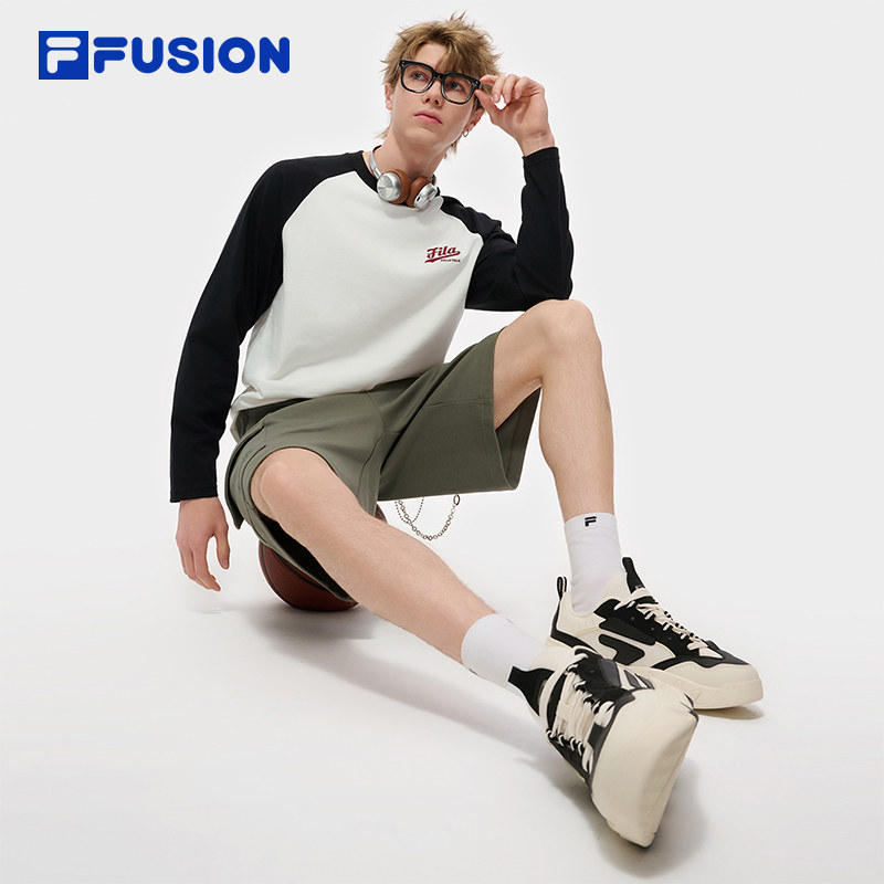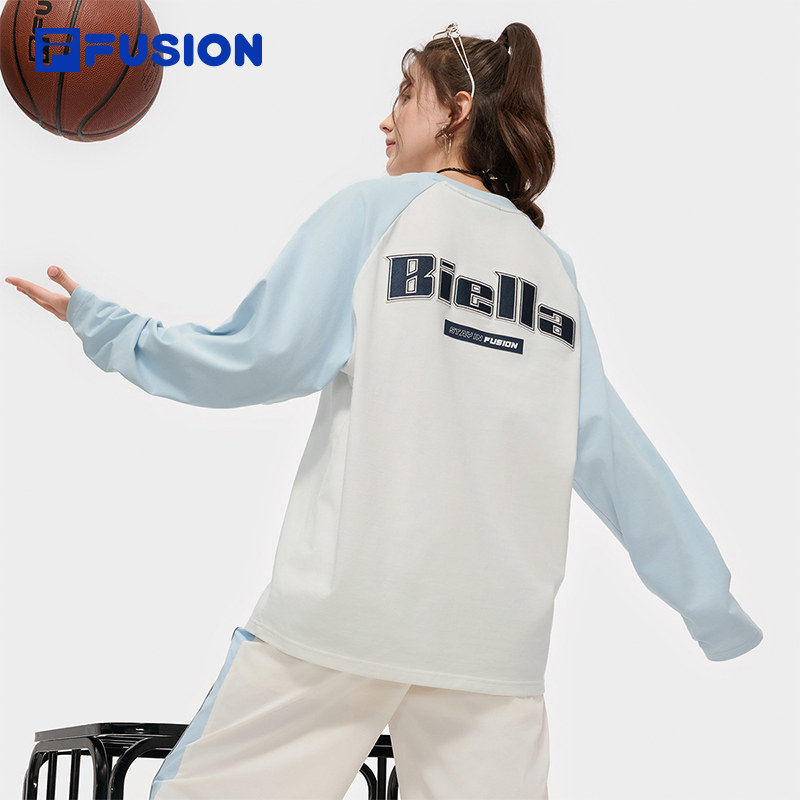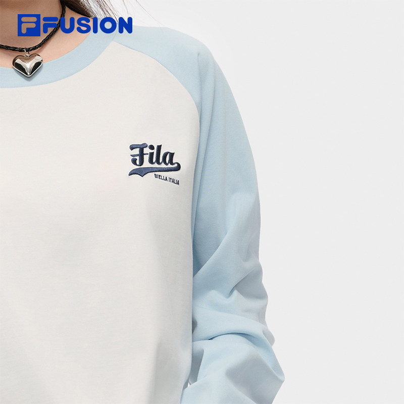 FILA FUSION斐乐潮牌情侣款针织长袖衫2025秋新款防晒凉感拼色长T