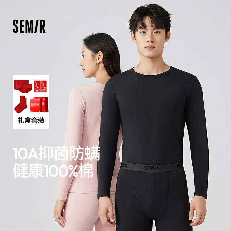 森马男女纯棉秋衣秋裤2026新款打底内衣秋冬抗菌情侣新年礼盒套装