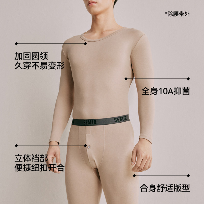 七匹狼男士保暖内衣套装纯棉毛衫春秋青年圆领薄款防寒秋衣秋裤男