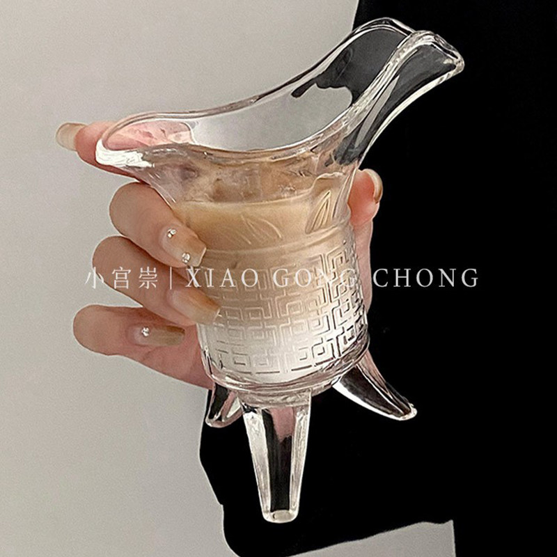 帝王杯冰美式拿铁咖啡杯Ins风创意搞怪三足爵杯玻璃杯奶茶杯酒杯