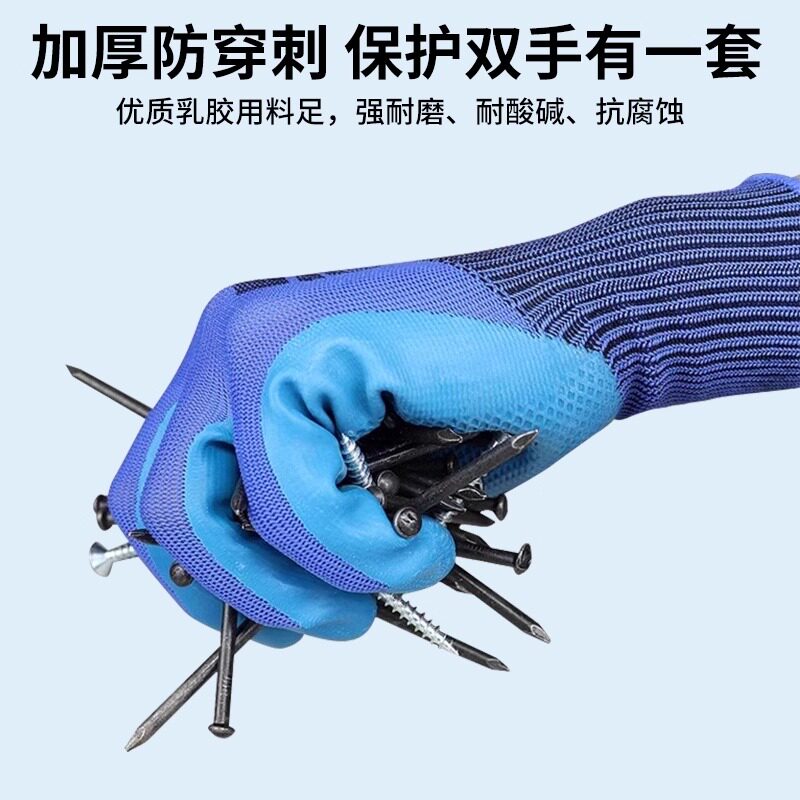 手套劳保手套乳胶橡胶手套工作劳保防滑防水耐磨胶皮手套工地干活