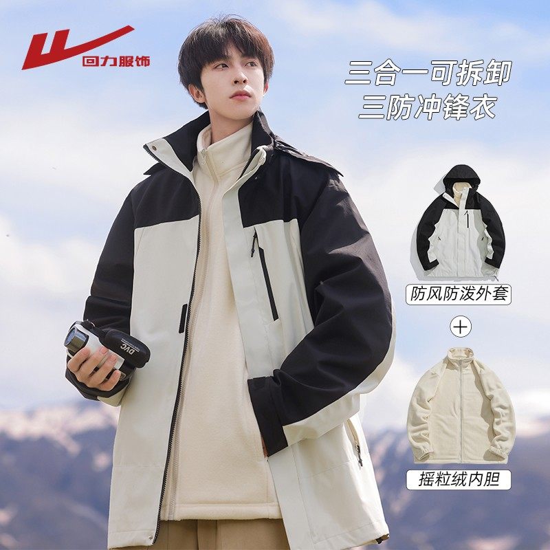 回力红色三合一冲锋加厚外套男士春秋冬季青少年男生冬装夹克衣服
