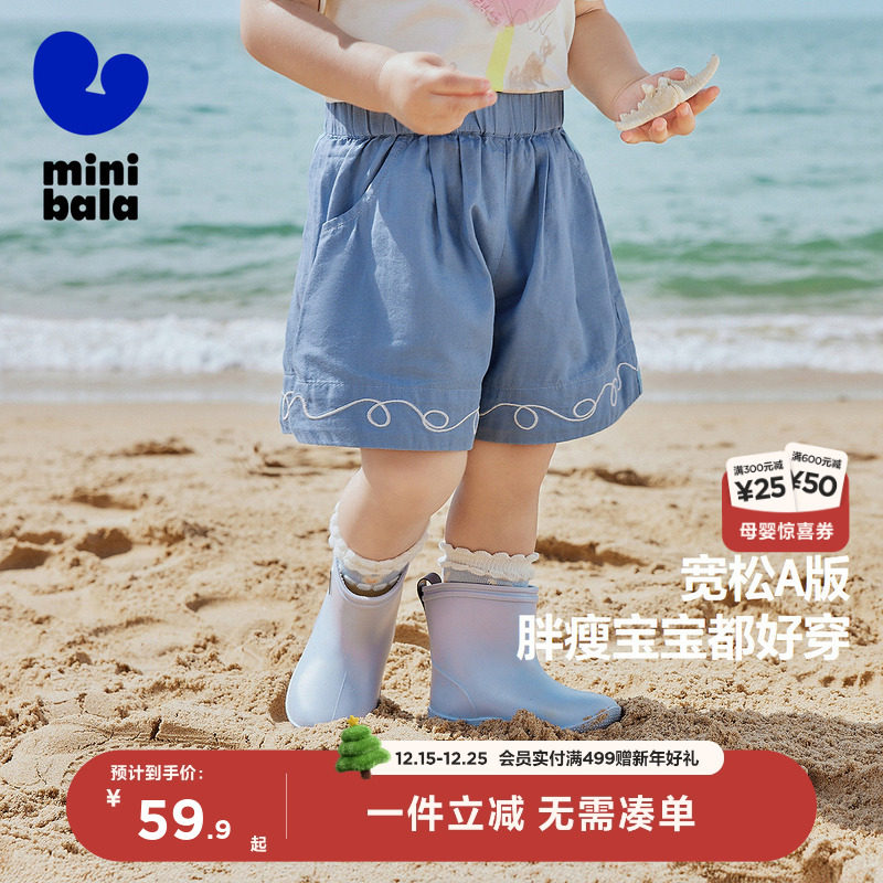 迷你巴拉巴拉女童短裤夏季宝宝莫代尔柔软牛仔轻薄透气裤子