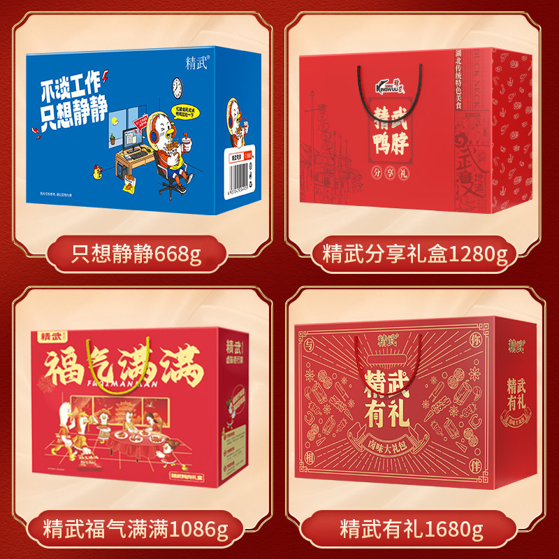 精武鸭脖卤鸭货零食大礼包辣卤武汉特产解馋礼盒卤味鸭心休闲食品