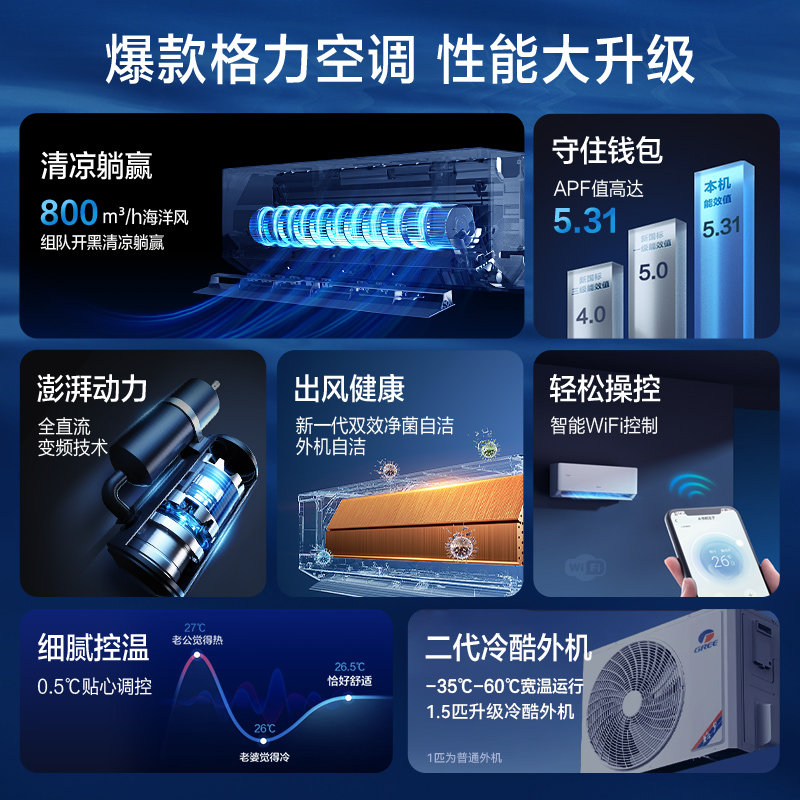 政府补贴】格力空调云佳Pro1.5匹家用挂机冷暖变频省电一级能效