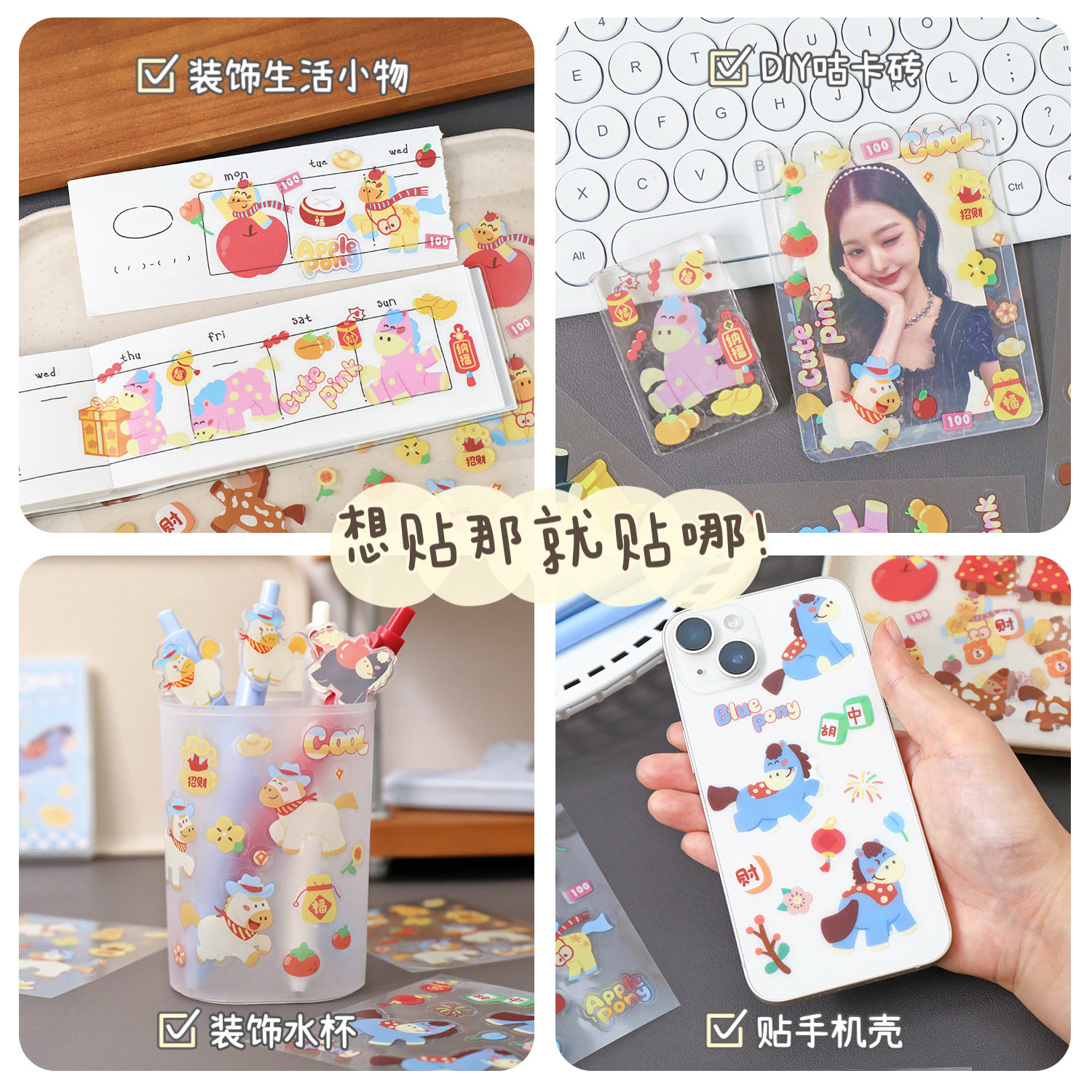 卡通小马pet贴纸透明防水手账贴纸高颜值水杯手机壳粘贴画diy贴纸