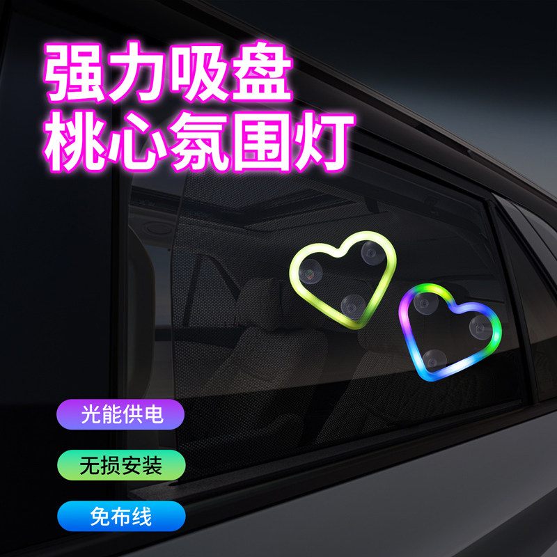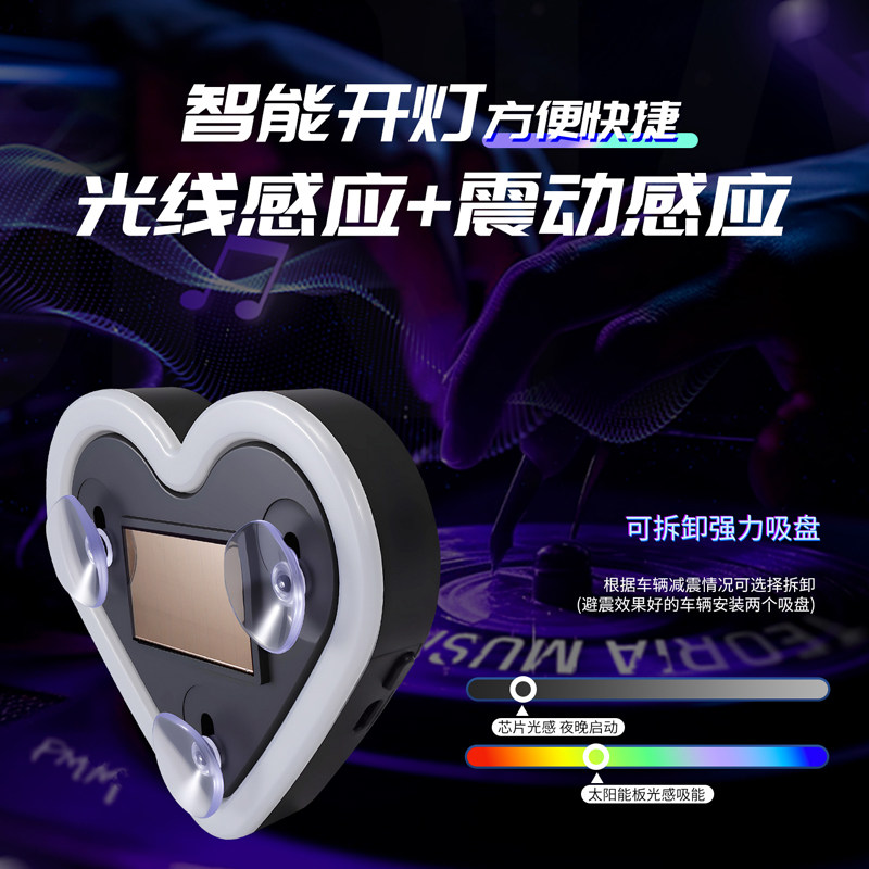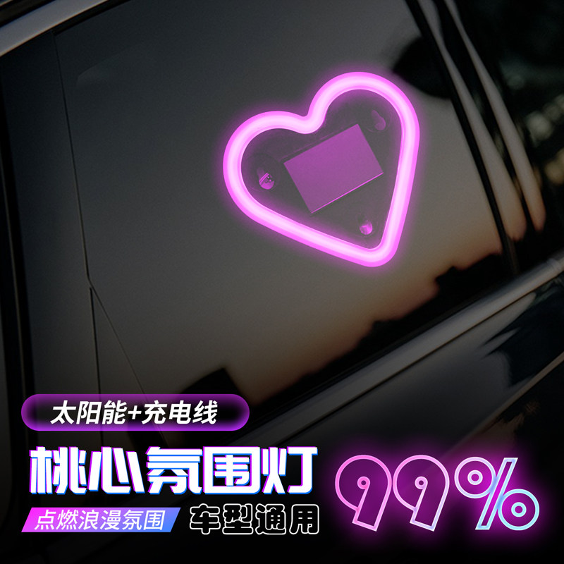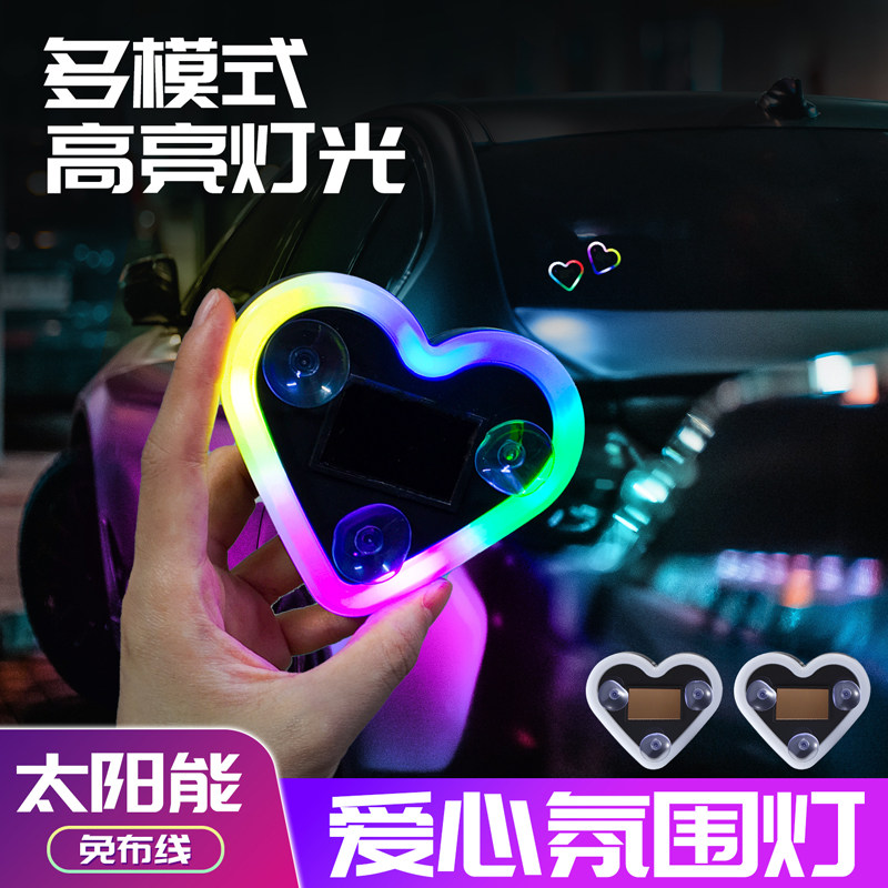 汽车爱心灯太阳能无线装饰灯LED警示灯三角窗后窗车载有趣氛围灯