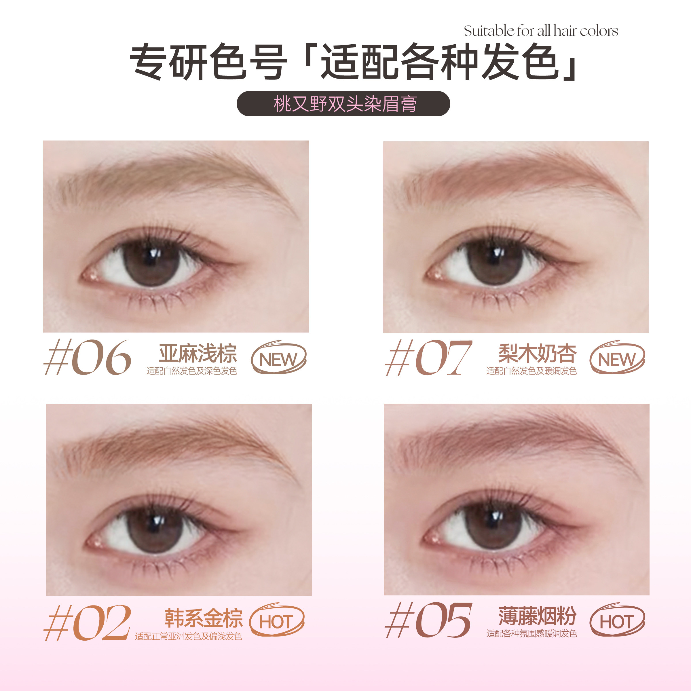 桃又野双头染眉膏眉笔二合一防水自然持久眉粉浅色粉棕色眉毛女