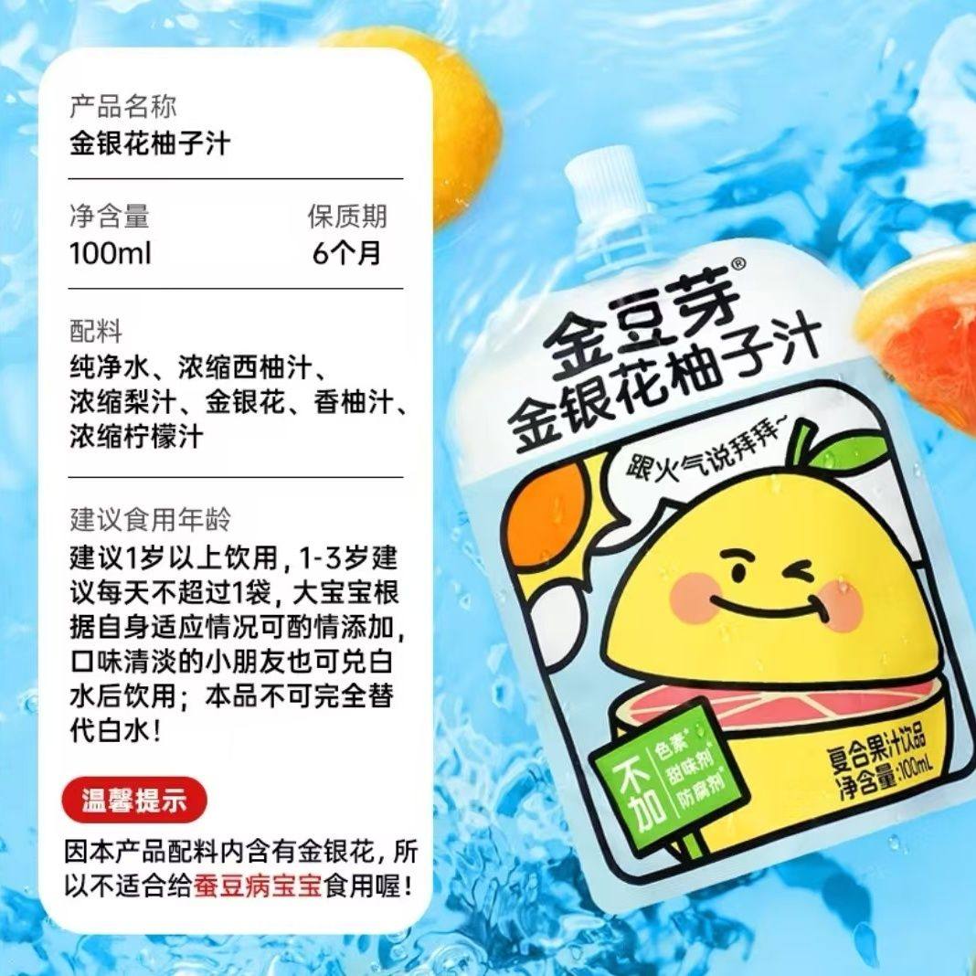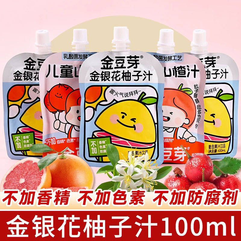 金豆芽金银花柚子汁儿童成人下火饮料宝宝山楂汁袋装100ML零添加