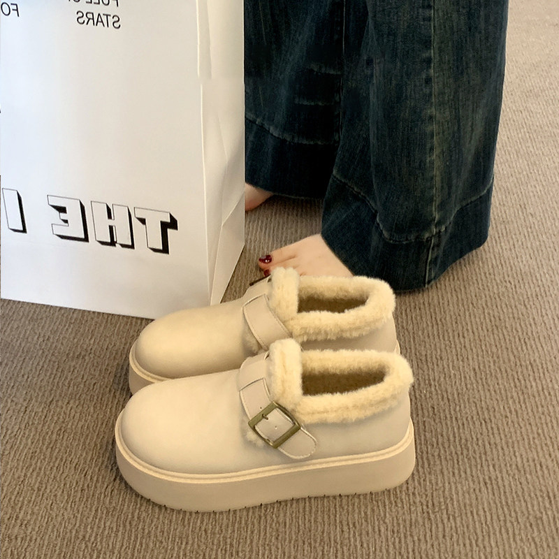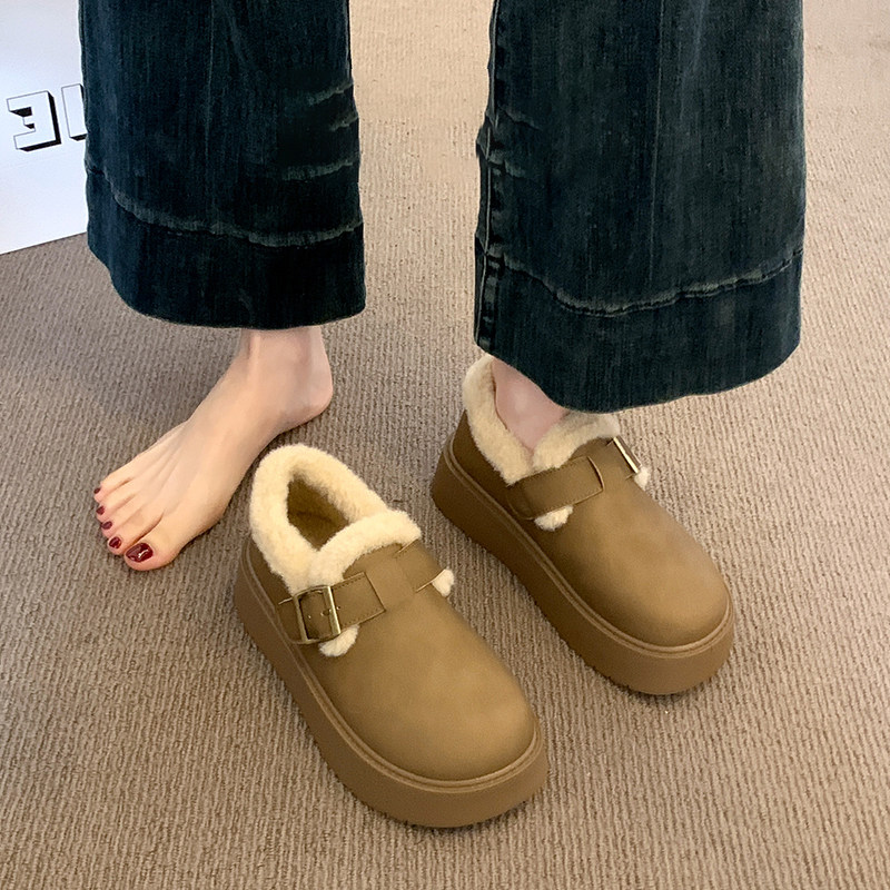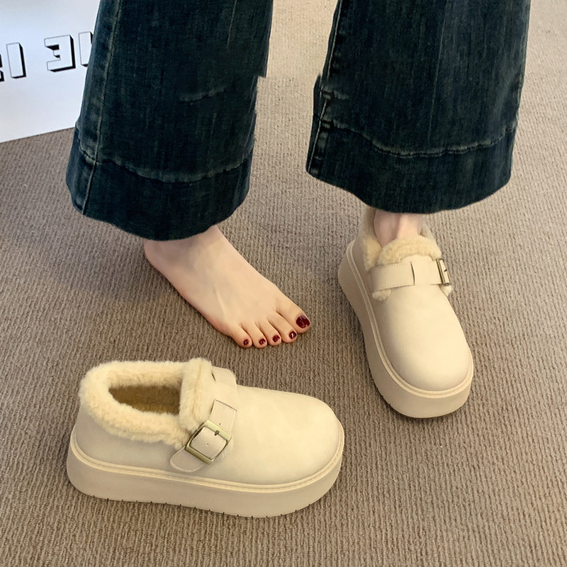 低帮厚底雪地靴女2025新款冬季懒人一脚蹬毛毛棉鞋加绒加厚女鞋子