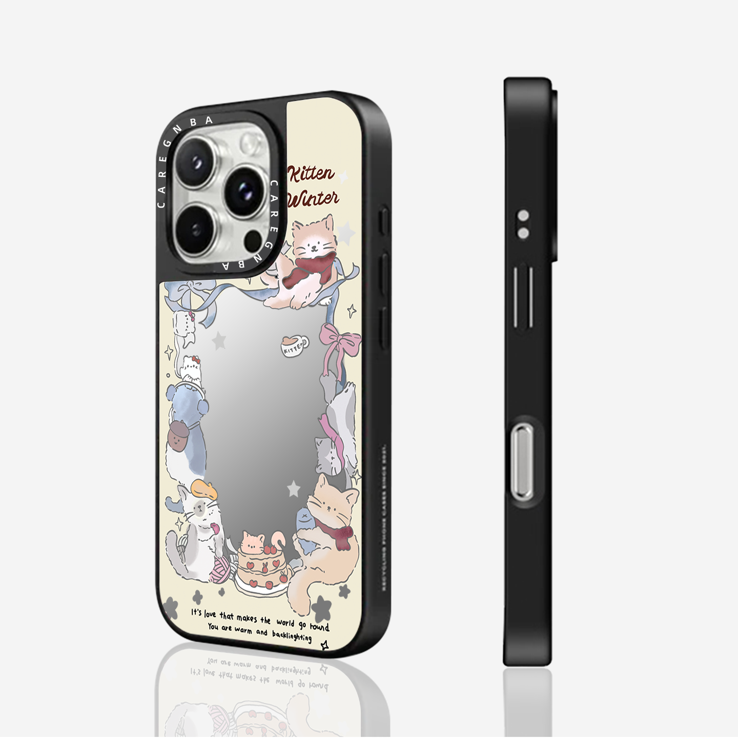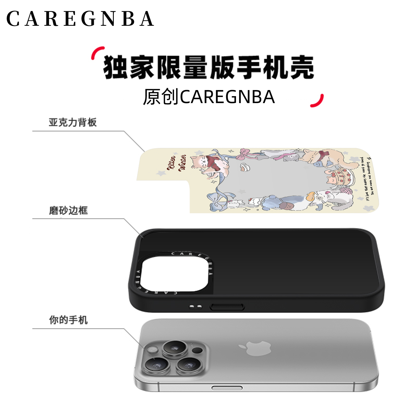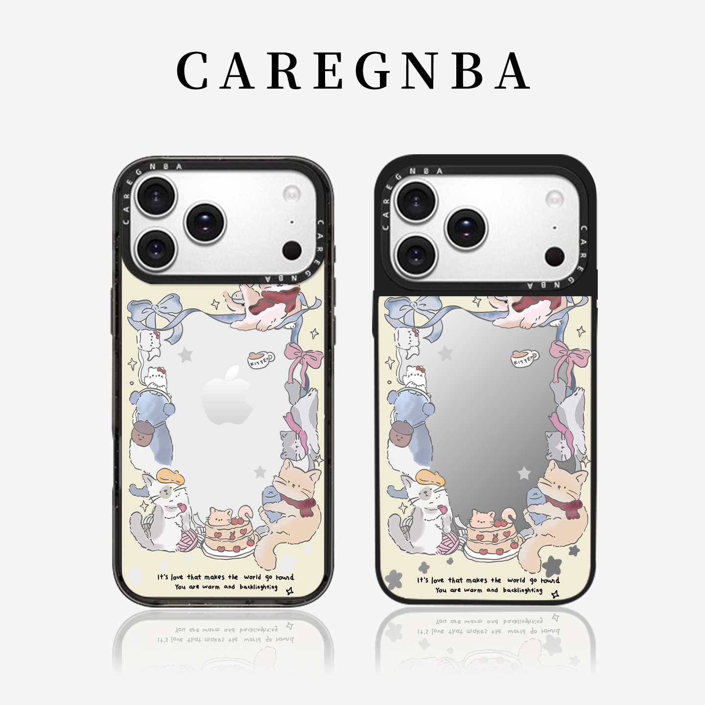 CAREGNBA小猫蝴蝶结吴宣仪网红同款适用苹果16ProMax手机壳iPhone17pro新款14plus镜面13防摔15p女11全包12套