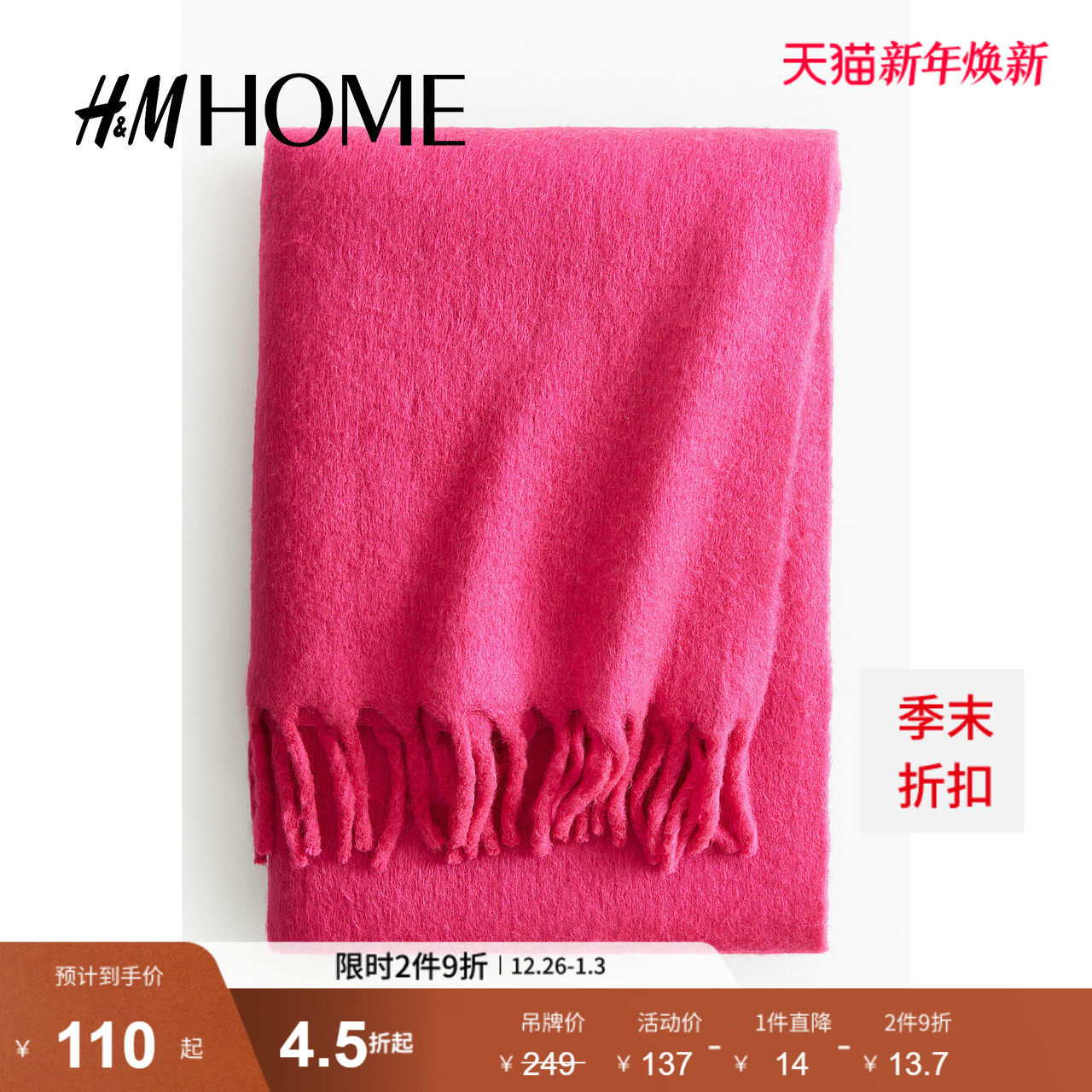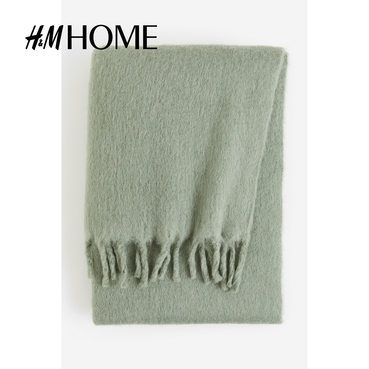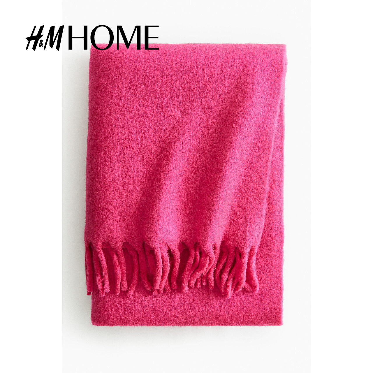 HM HOME床上用品毛毯冬季柔软短侧饰流苏羊毛混纺毯1106954