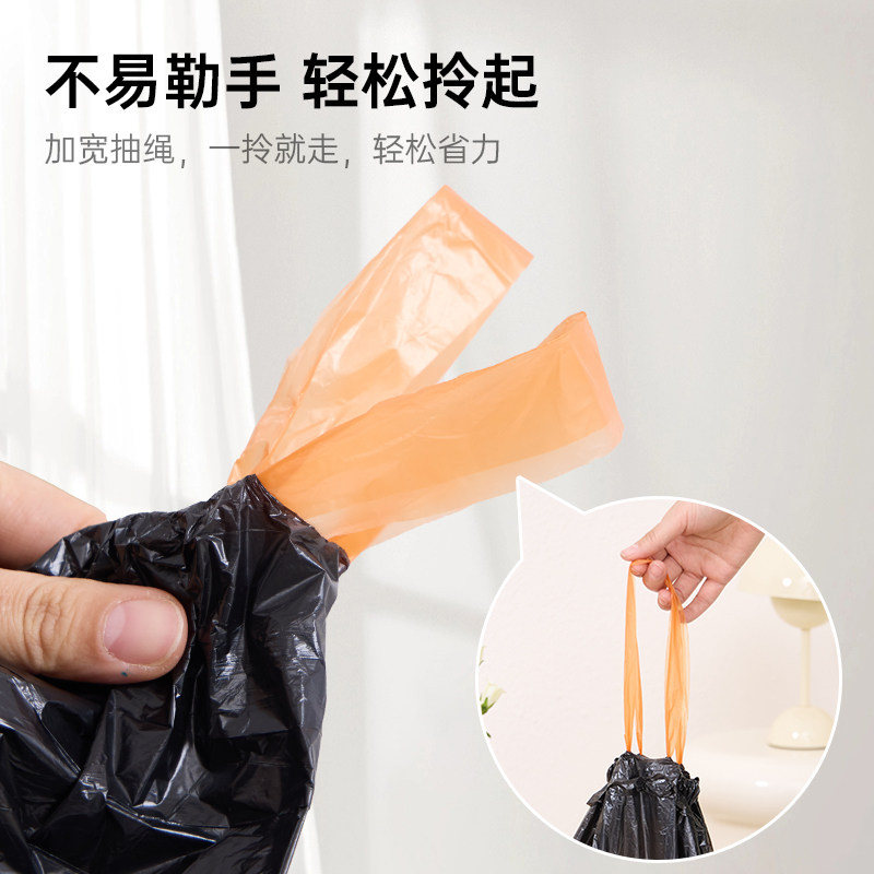 手提式抽绳垃圾袋家用加厚实惠批发装厨房黑色大号垃圾袋