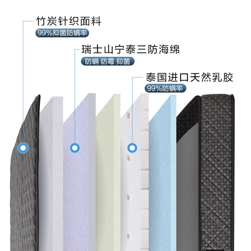 富安娜床垫泰国进口天然乳胶床垫席梦思十大名牌家用独袋弹簧床垫