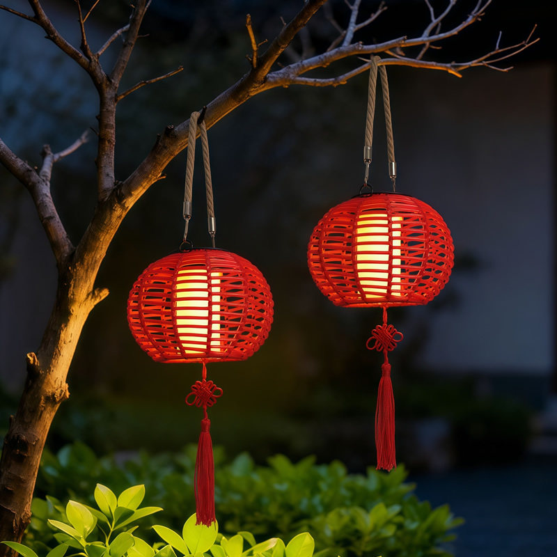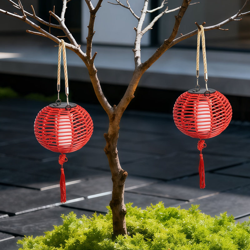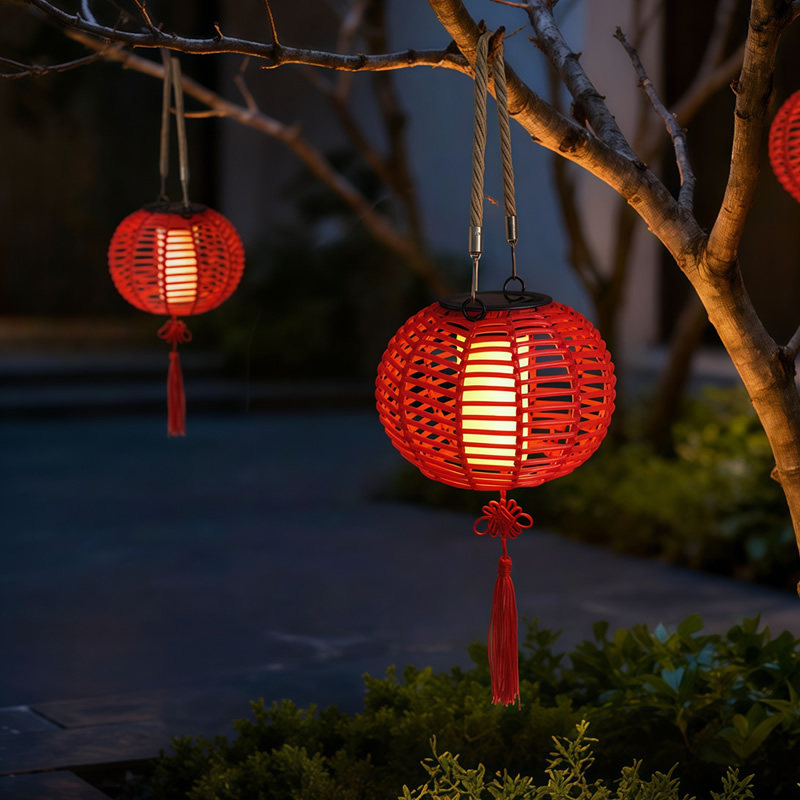太阳能庭院装饰红灯笼新年中式吊灯手提灯挂树灯阳台红色充电发光