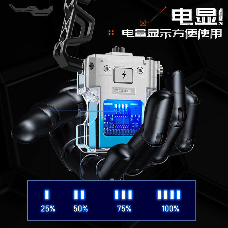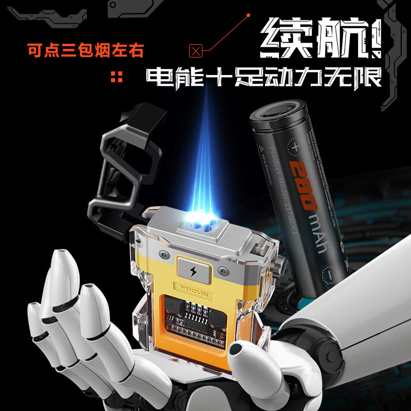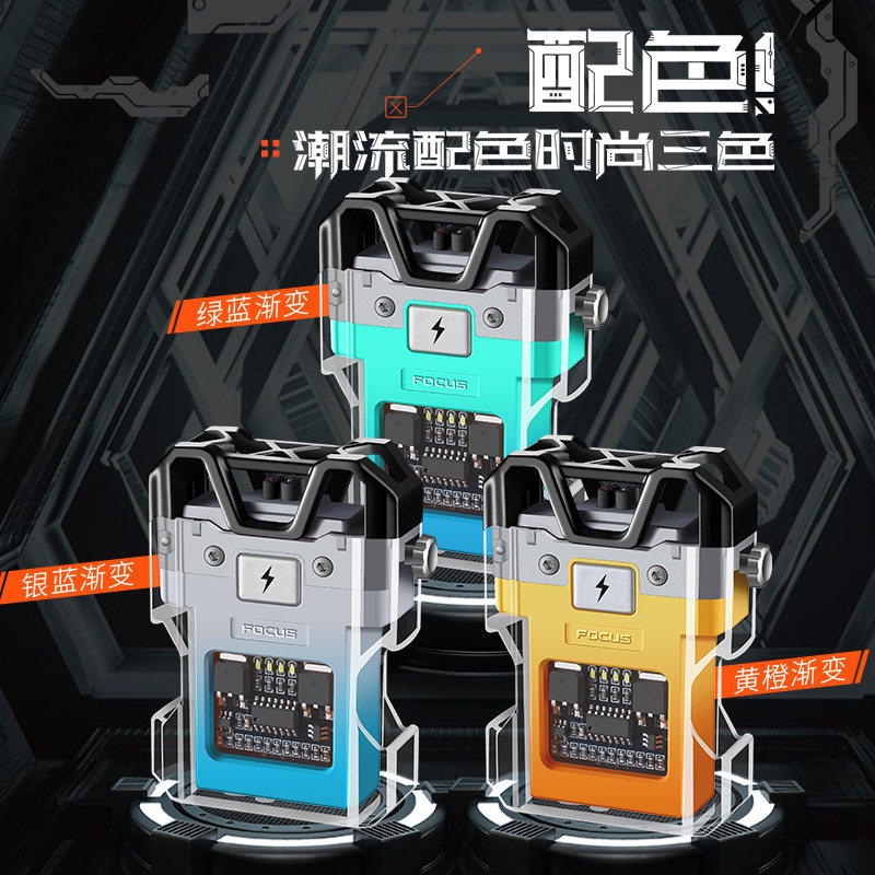 透明双电弧脉冲充电打火机创意个性防风点烟器可视电量国潮机甲风