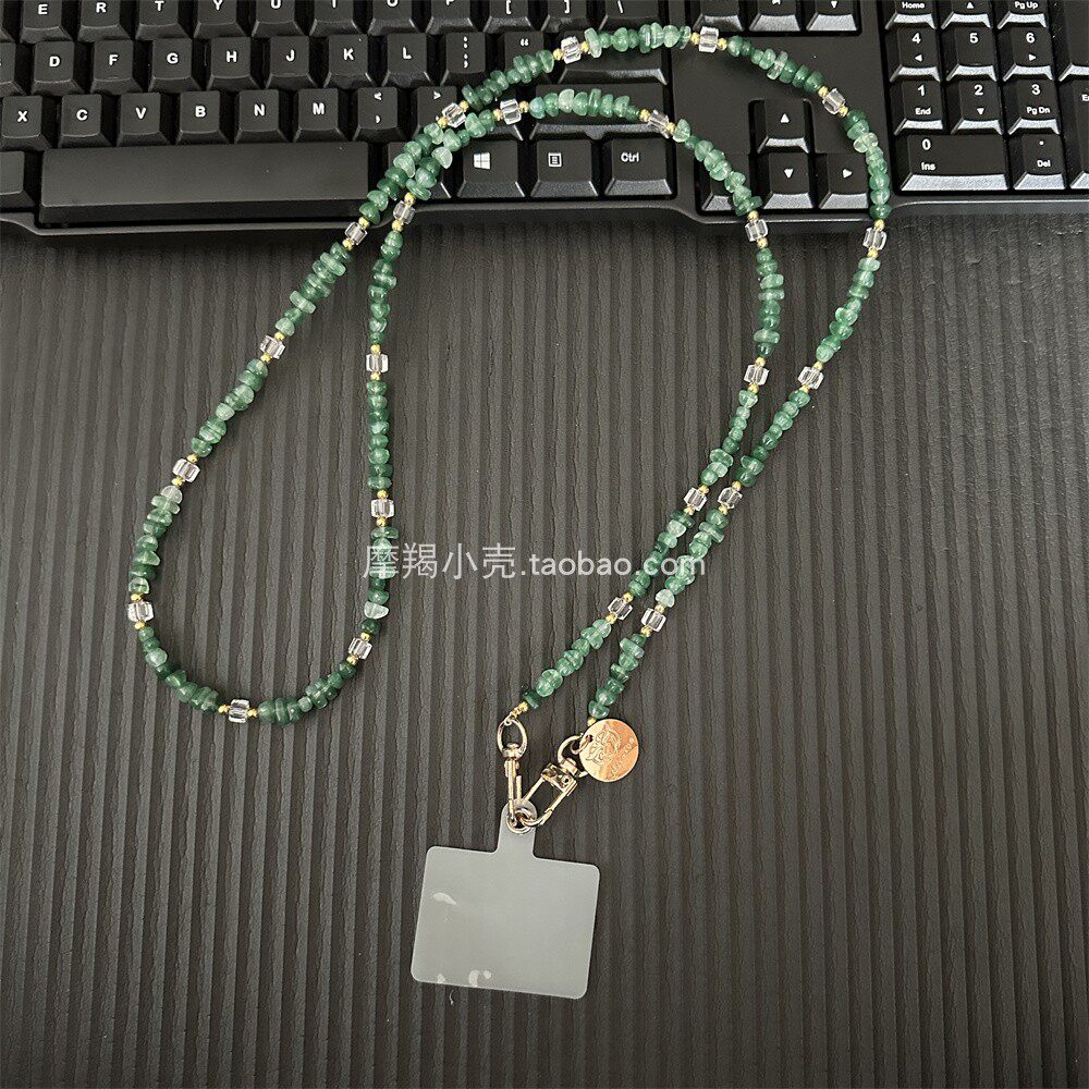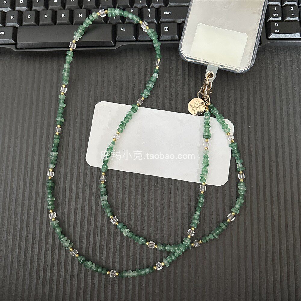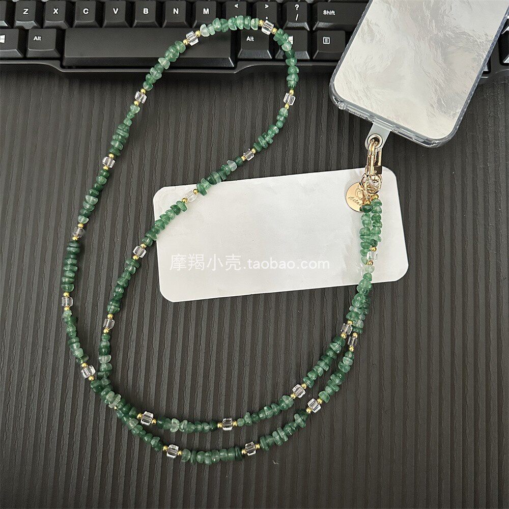 富贵复古绿水晶碎银子串珠链条斜挎手机长款相机挂绳斜背包挂链女